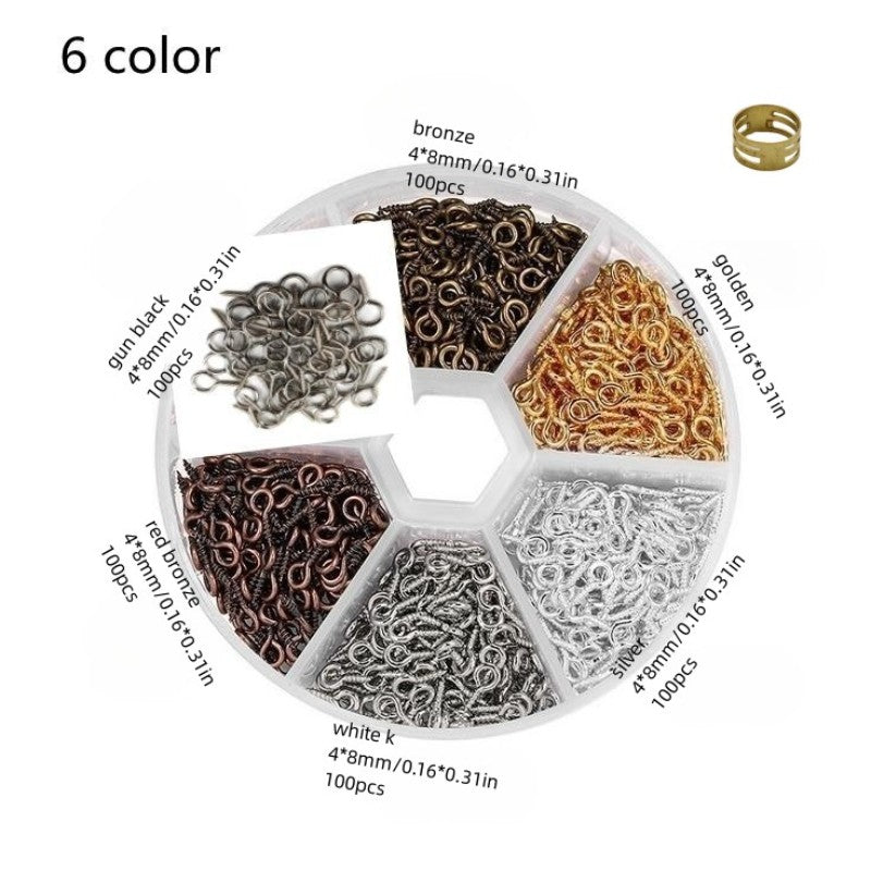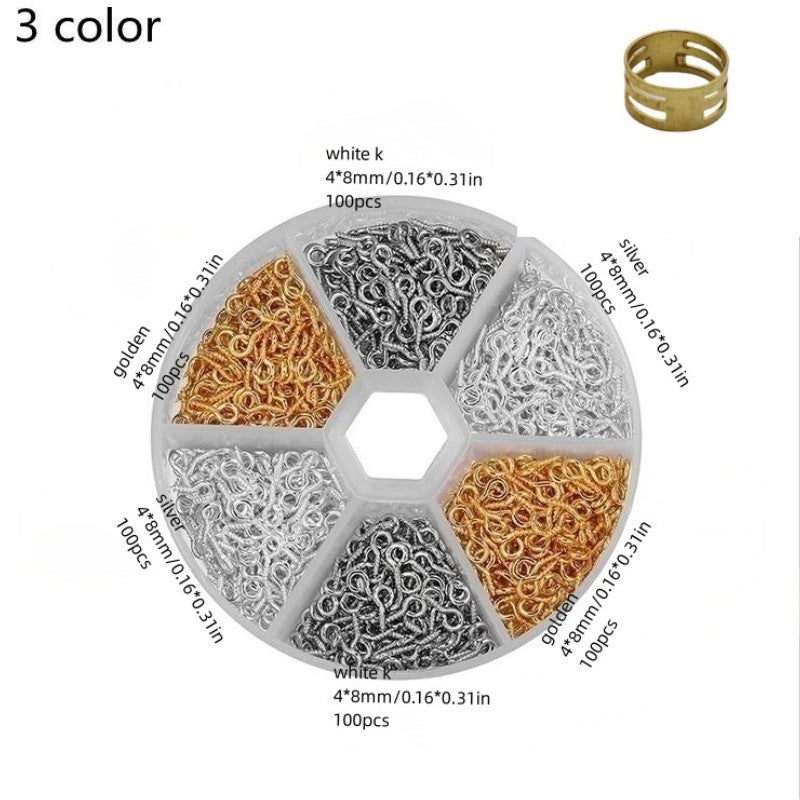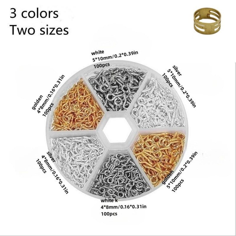 This set includes iron sheep eye shape nails, nine shaped needles, and screws for jewelry making findings.