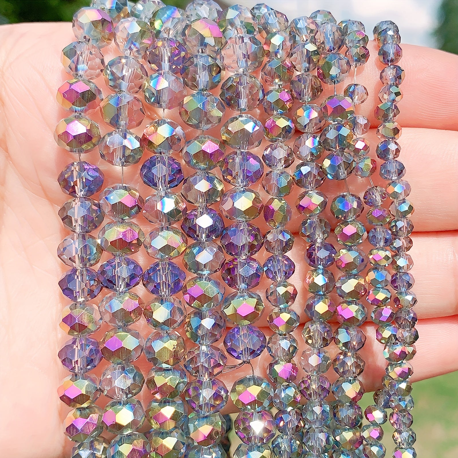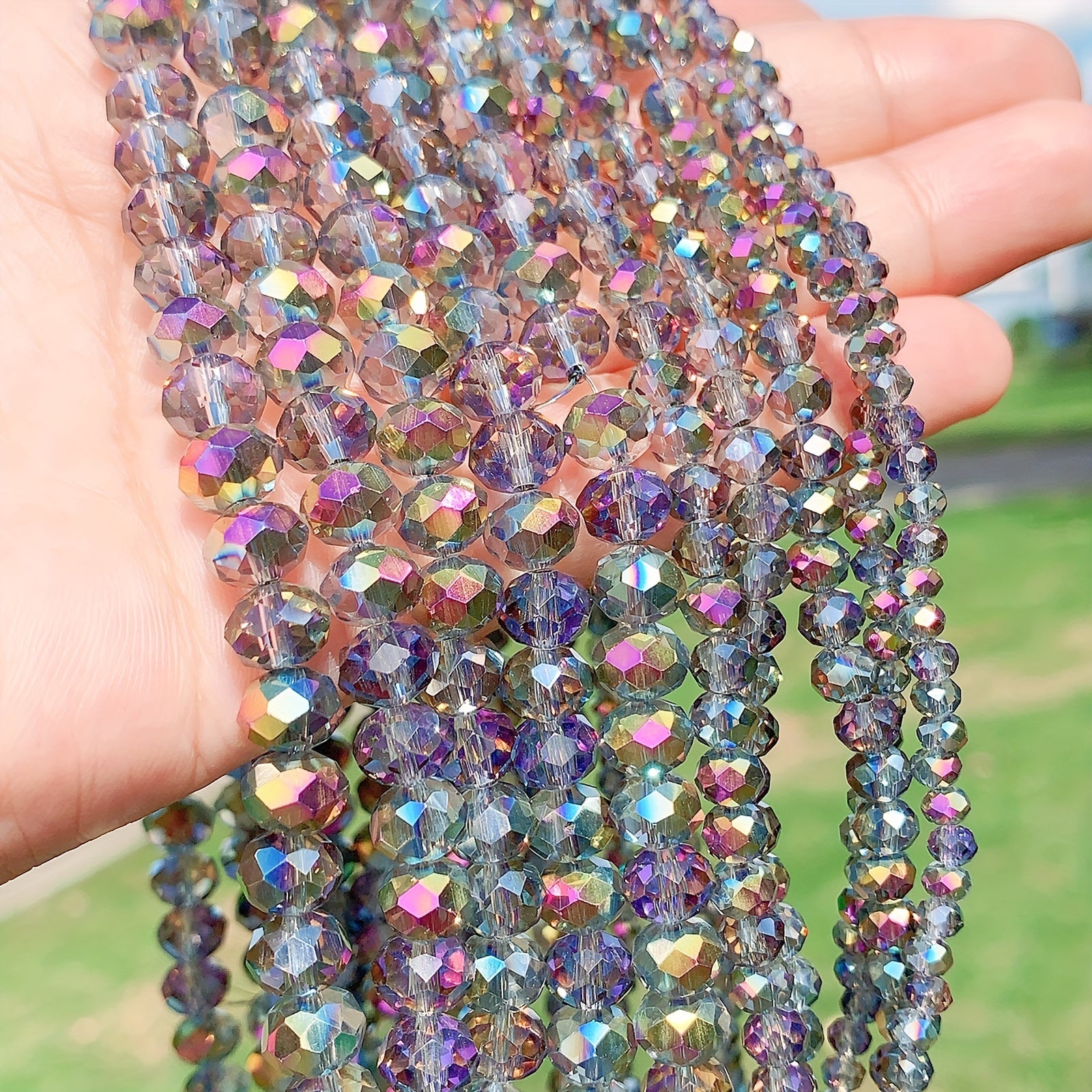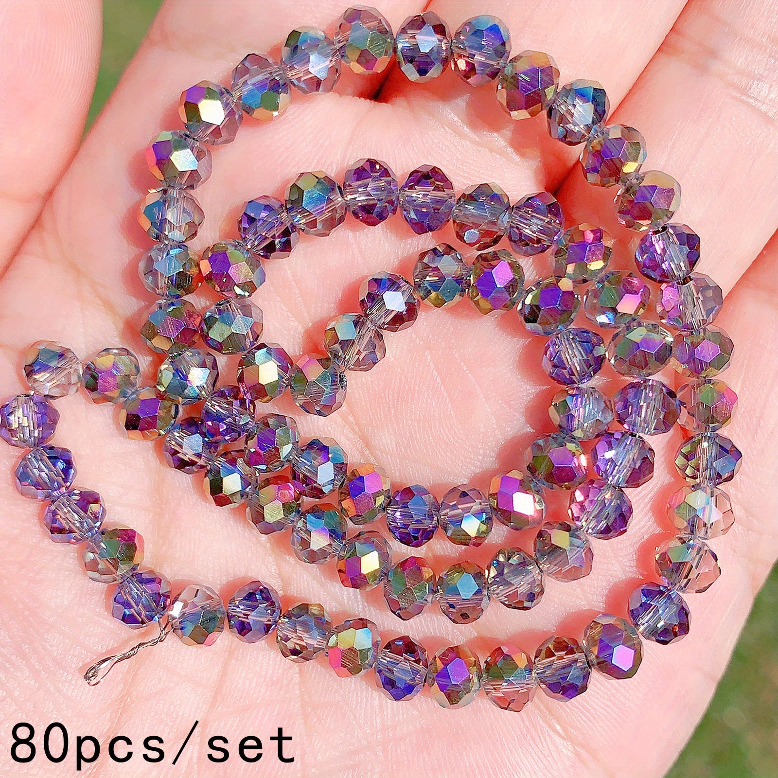 Create stunning jewelry with this set of faceted glass beads in vibrant shades of purple and rose red. Perfect for bracelets and necklaces.