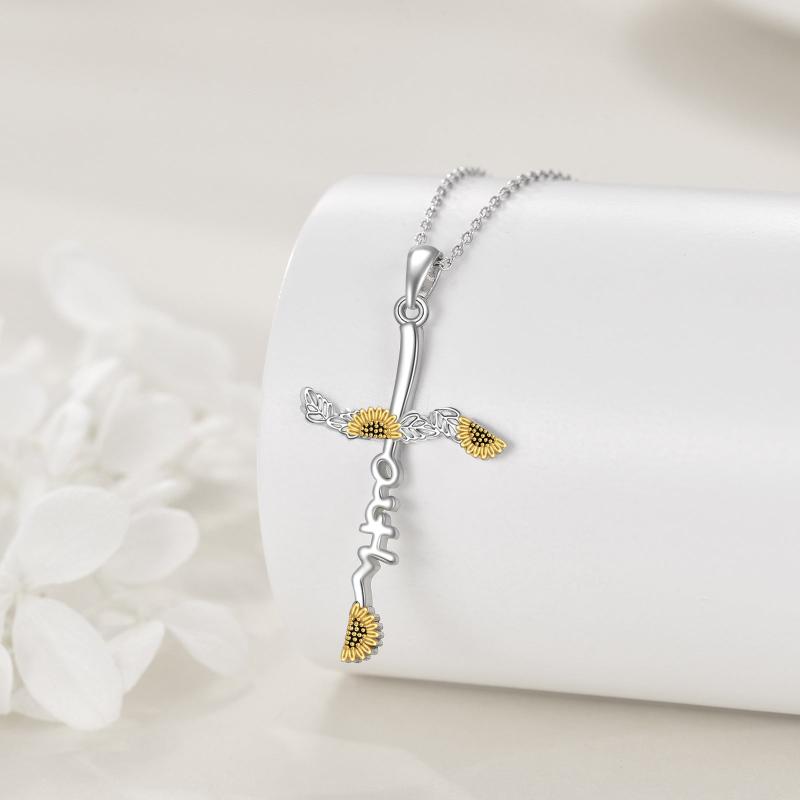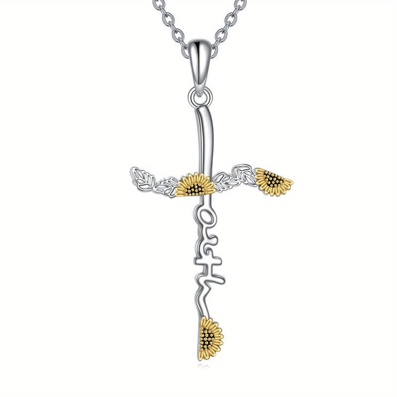 Beautiful and elegant sunflower necklace with a cross pendant, perfect gift for women, moms, and wives. Ideal for Thanksgiving.