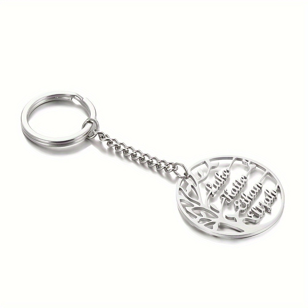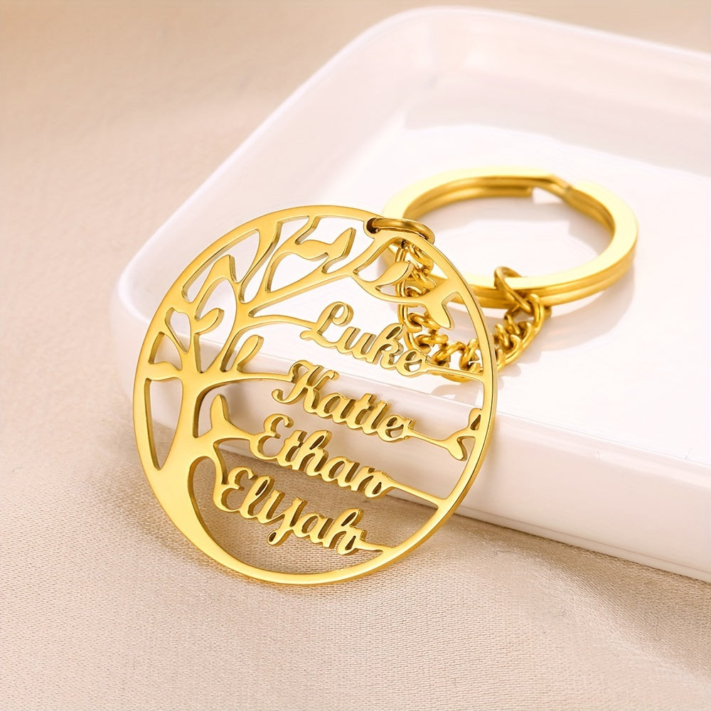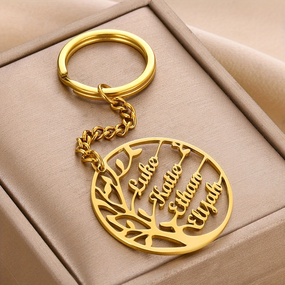 Keep your loved ones close with this personalized keychain featuring a family tree design. Made of high-quality stainless steel with 18K gold plating, this circular tag keychain is a perfect gift for family members.