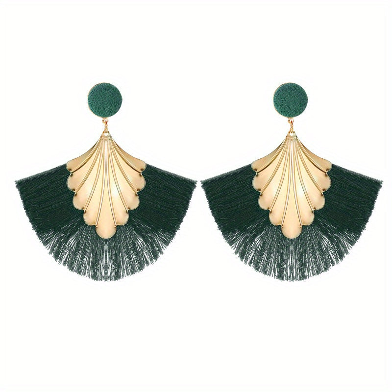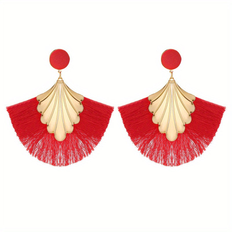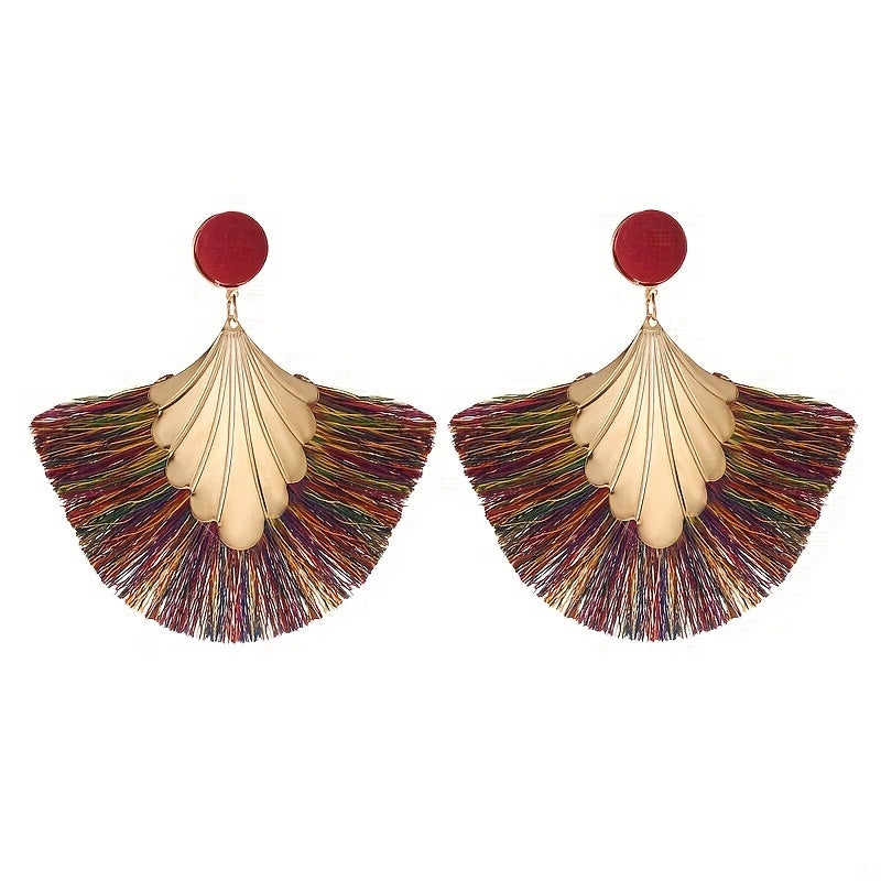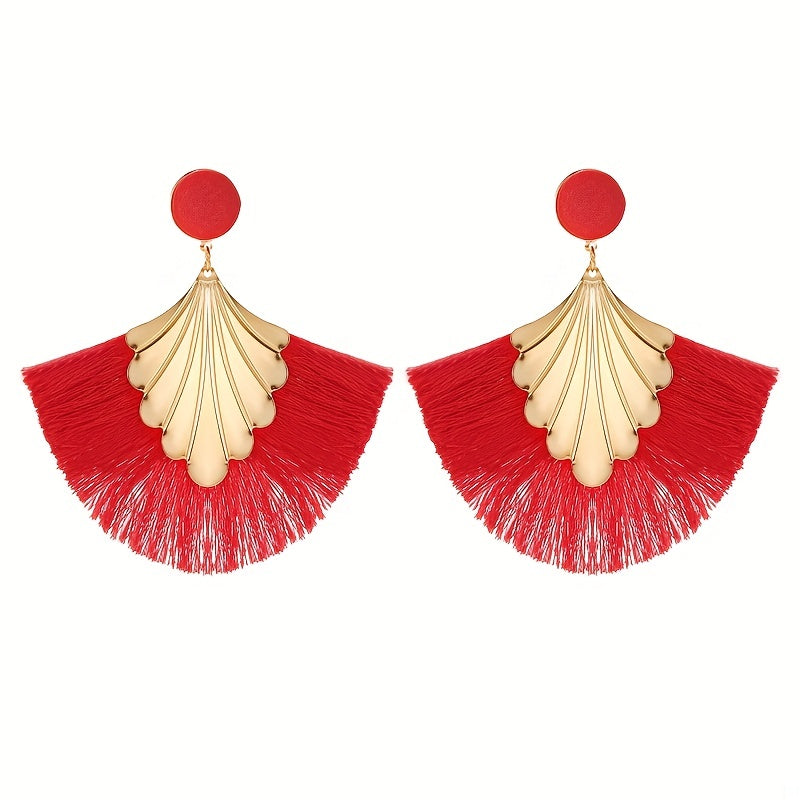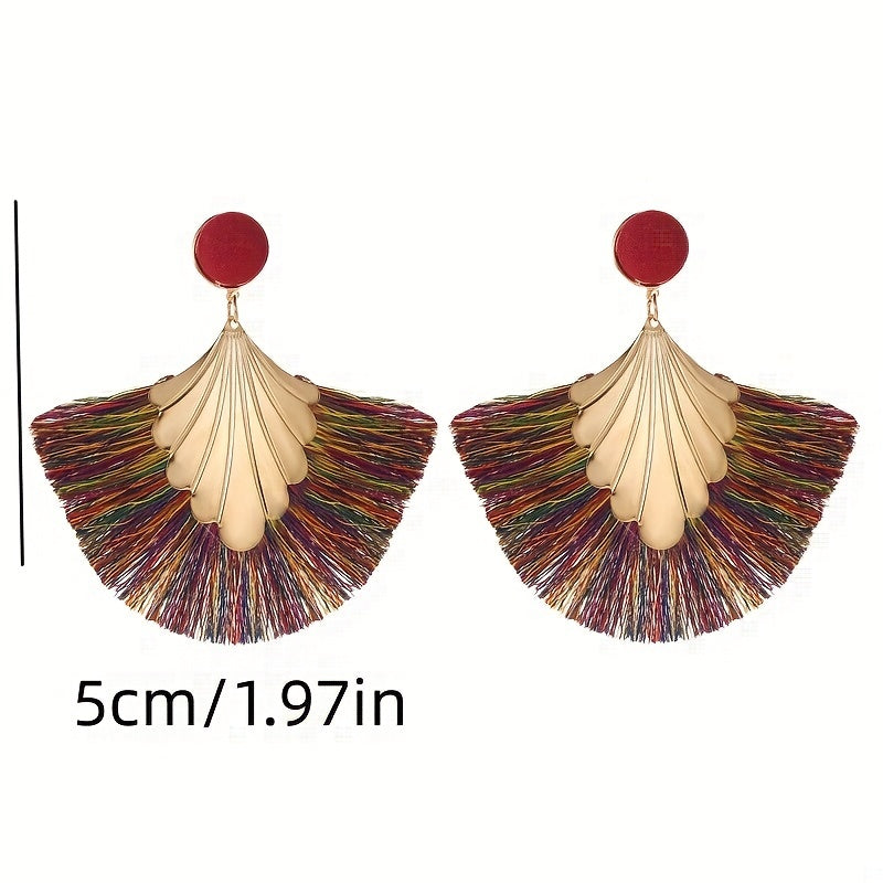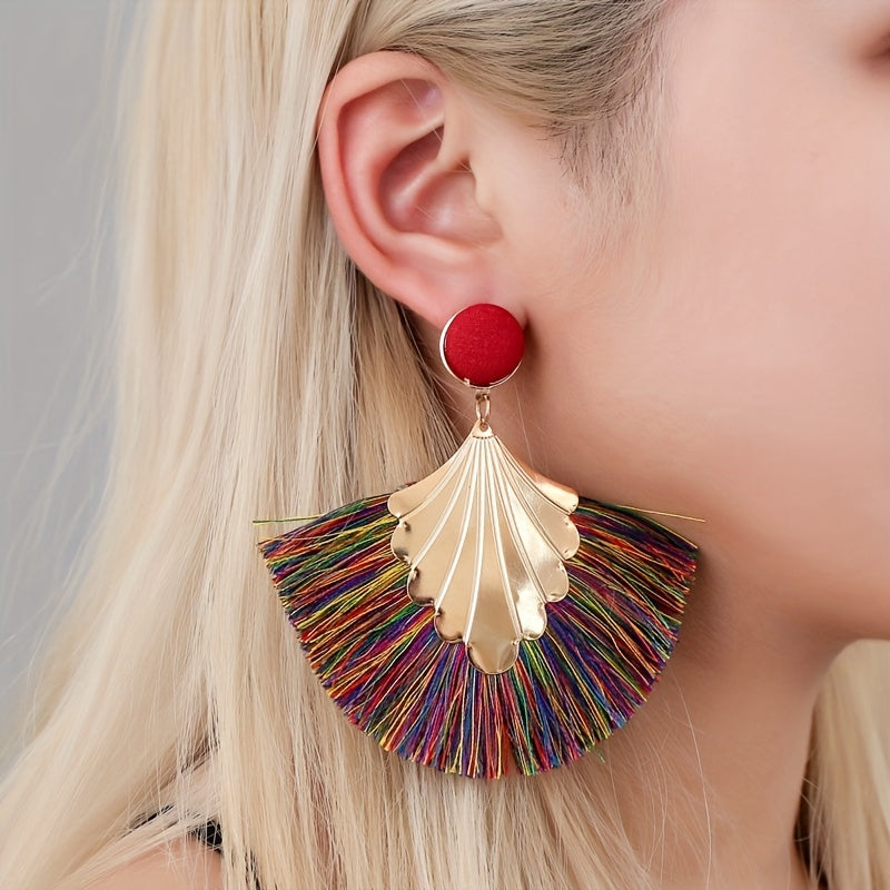 These elegant fan-shaped tassel earrings are a perfect addition to any boho style outfit. Made of high-quality alloy with 18K gold plating, they make a wonderful gift for any female.