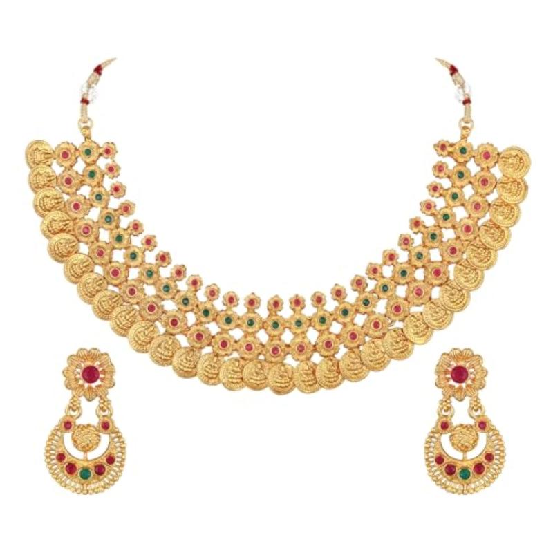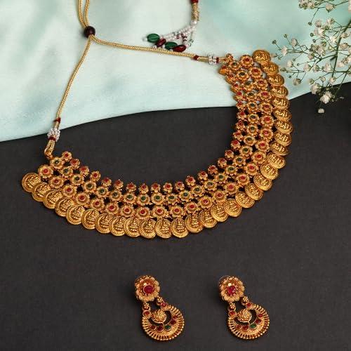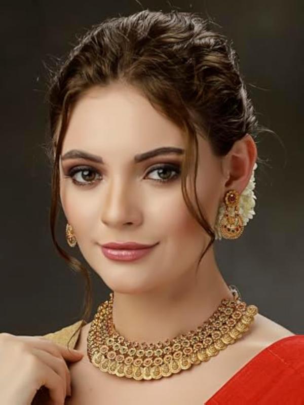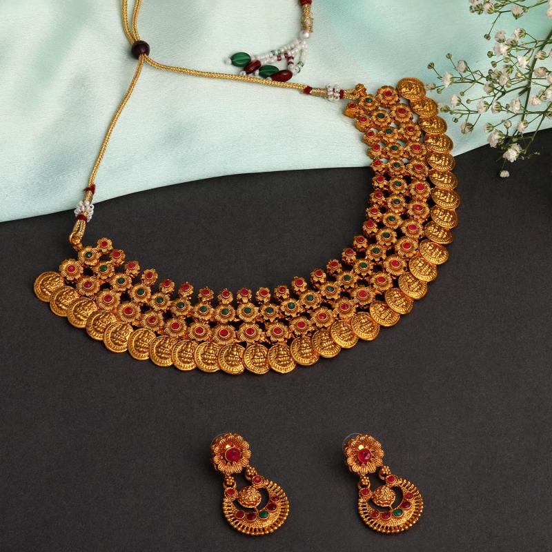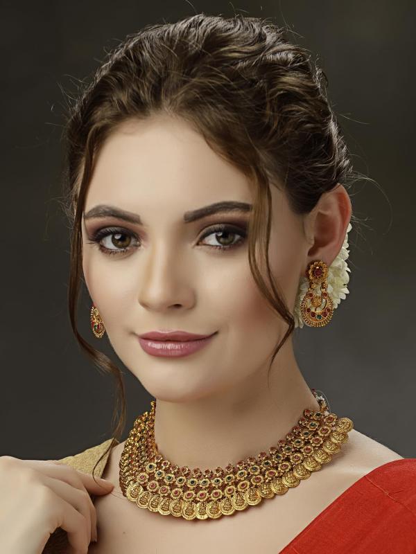 Elevate your style with this traditional temple necklace set featuring beautiful pearls.