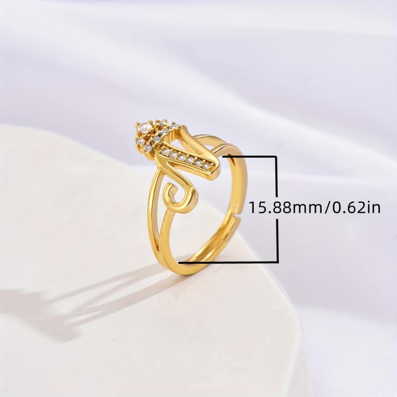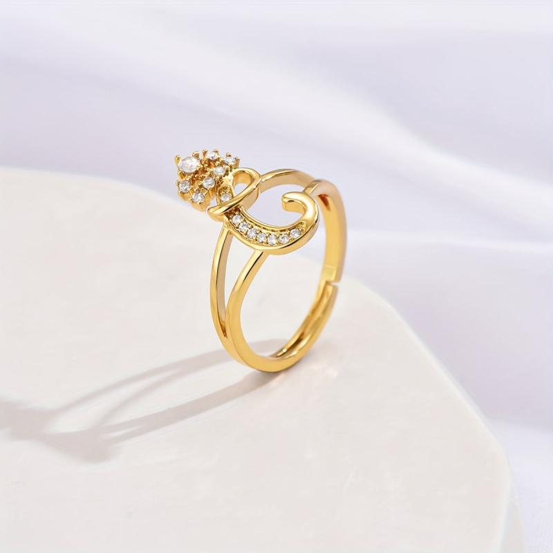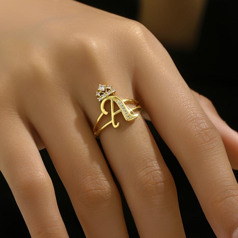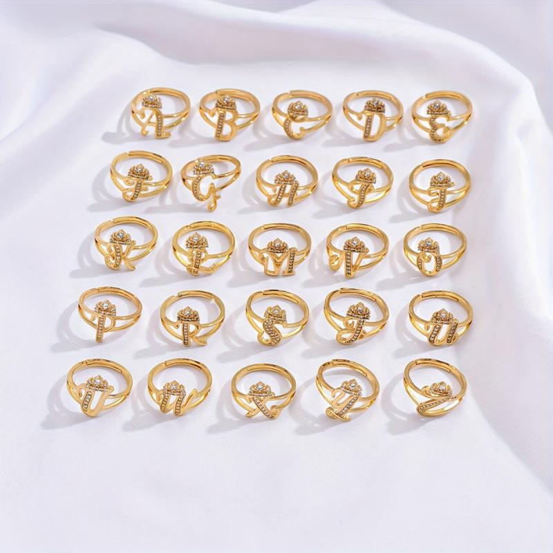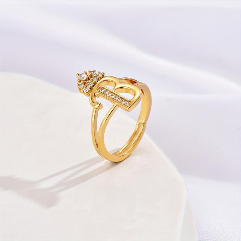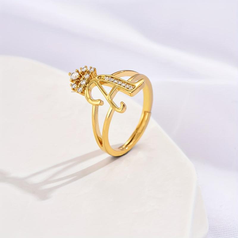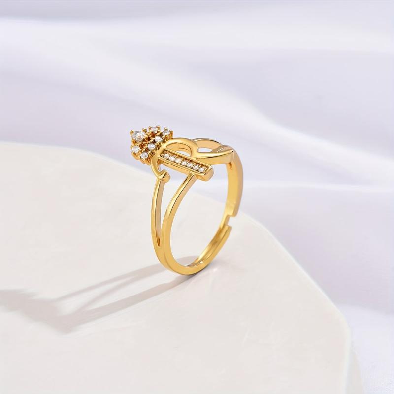 This stylish ring features a hollowed crown design with a letter accent and sparkling cubic zirconia inlay. It is adjustable to fit different finger sizes.