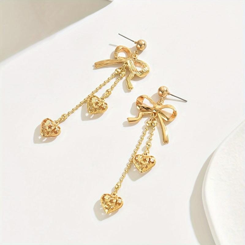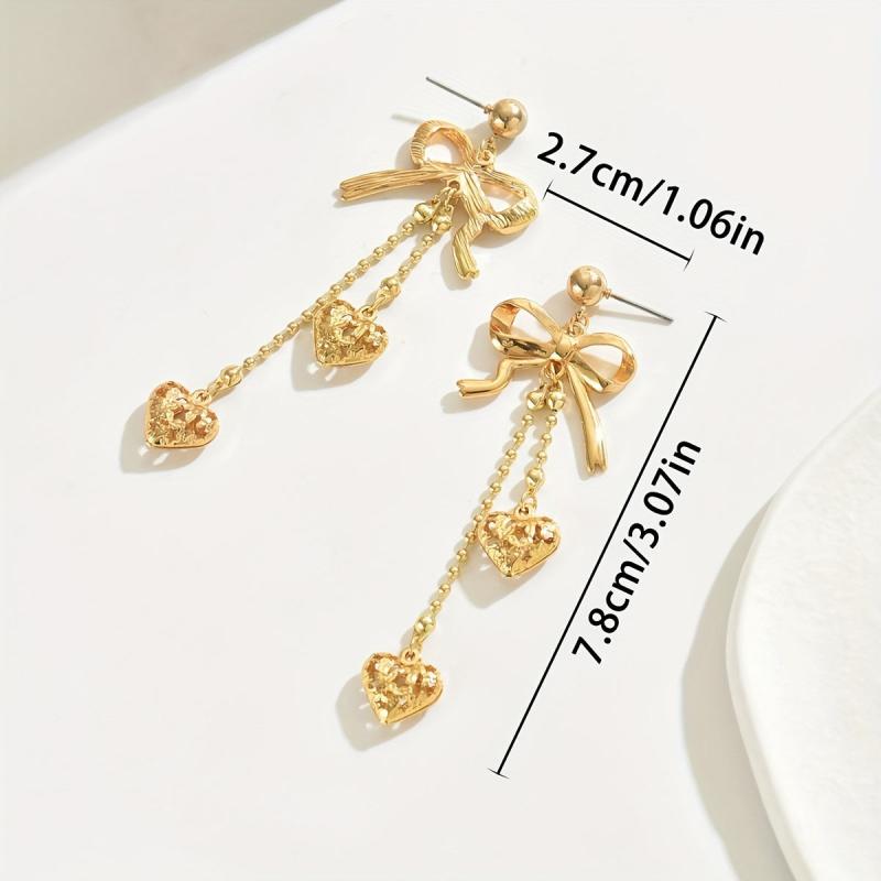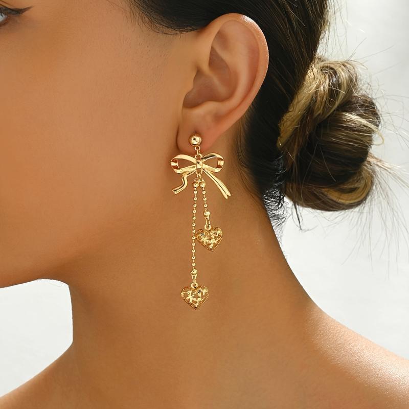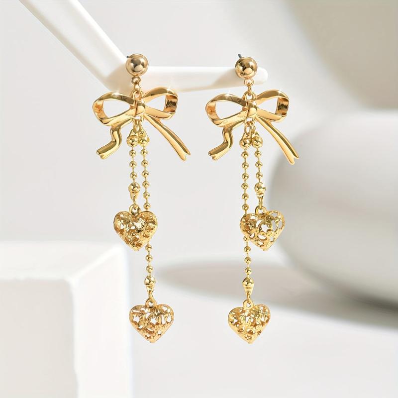 These stylish earrings feature a bow pair design with a hollow metal love pendant, metal ball chain, and tassel. They are a classic accessory suitable for all seasons and make a great gift for Thanksgiving.