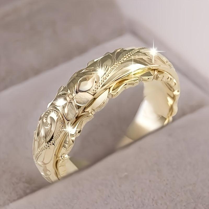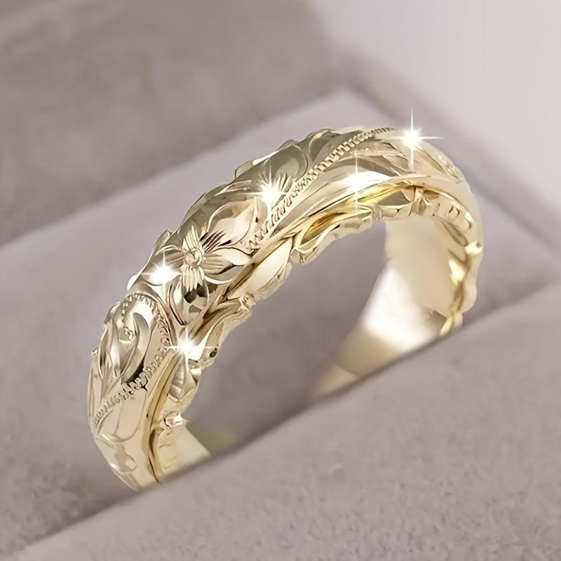 This stylish ring features a beautiful carved rose design, making it a perfect accessory for women who love unique jewelry. The wide band adds a modern touch to the classic floral motif.