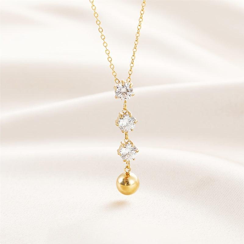 This stylish necklace features high-quality synthetic zirconia smooth steel balls, making it a perfect accessory for daily wear. The necklace is gold plated, adding a touch of elegance to any outfit.