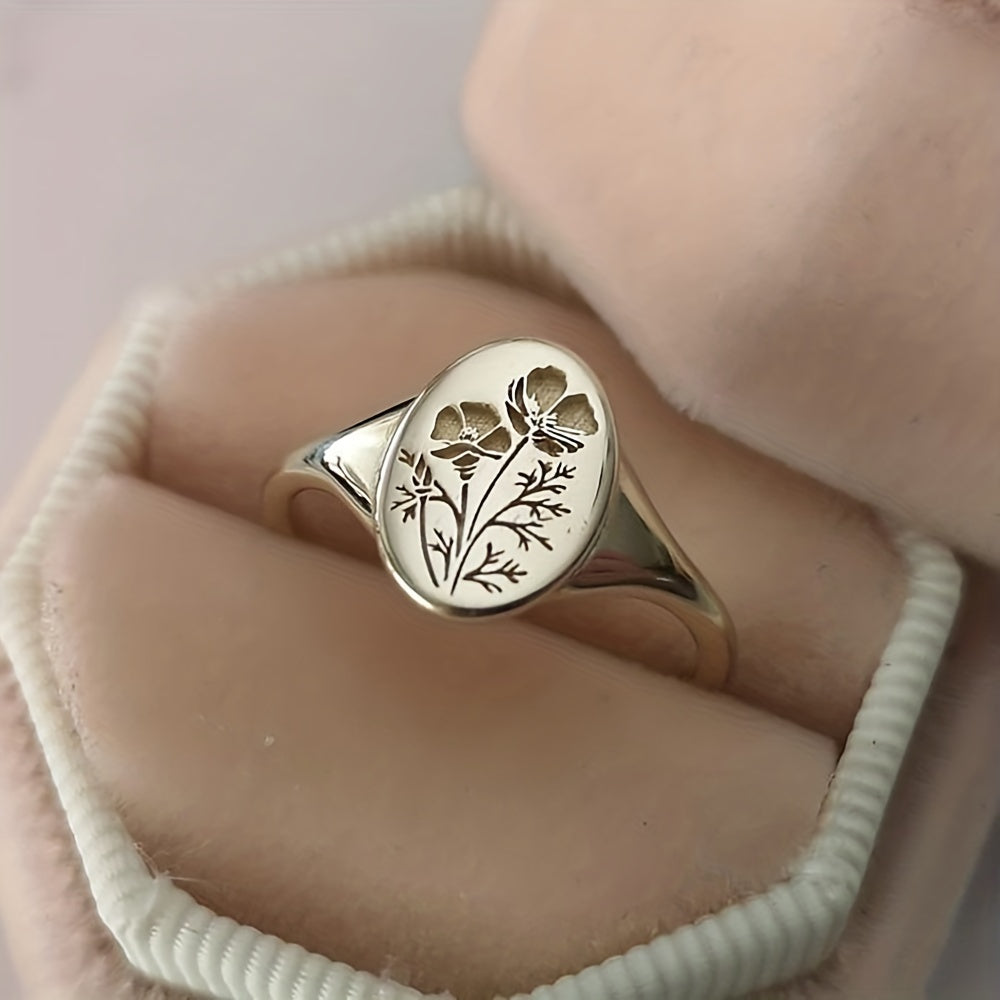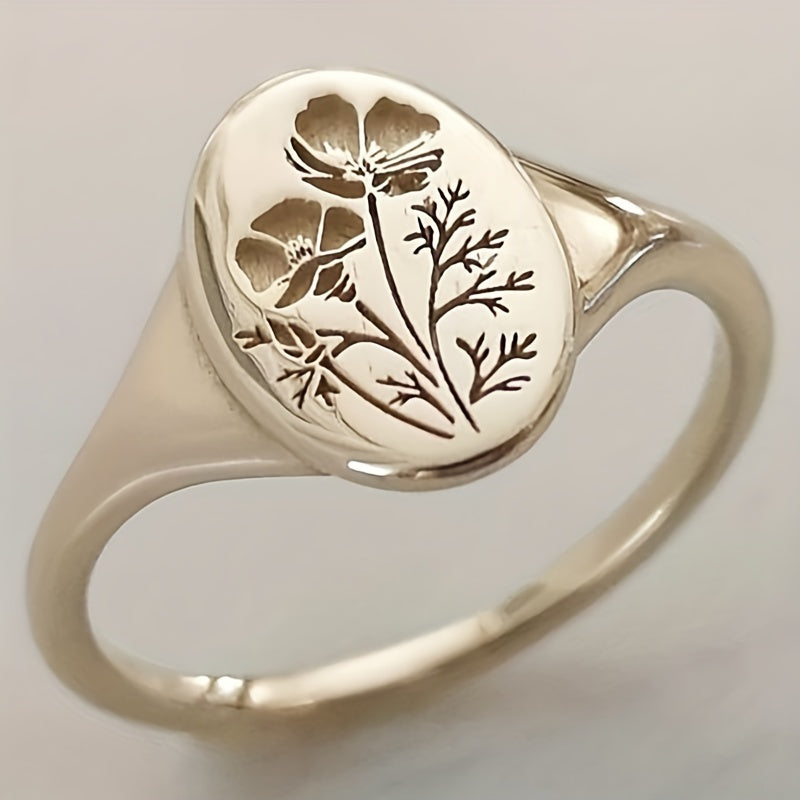 This stylish men's ring features an orchid flower design, perfect for engagements or as a couple ring. It adds a charming touch to any outfit.