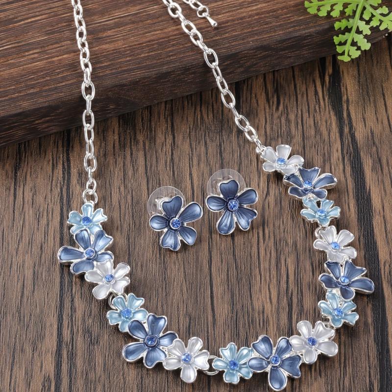 Complete your elegant look with this gorgeous silvery plated alloy jewelry set, featuring an adjustable geometric enamel design. Perfect for a special occasion like a wedding anniversary.