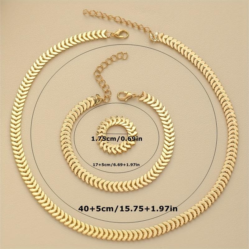 Elevate your style with this chic set featuring a wheat chain necklace, bracelet, and ring. Perfect for a versatile look with a metal wind design.