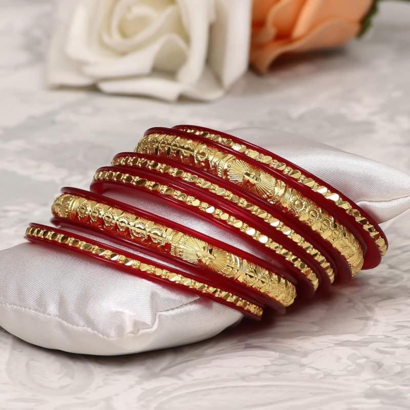 Stay stylish with this set of 6 bangles featuring micro plating for a trendy look.