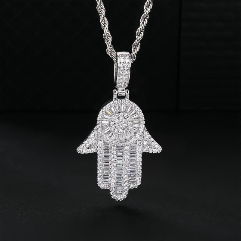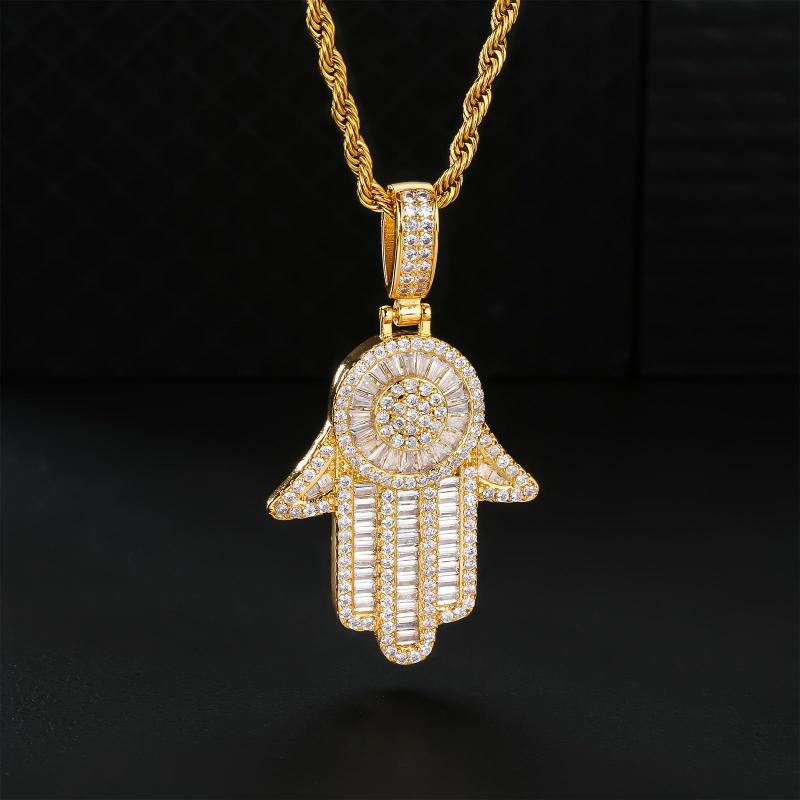 This Fatima Hands necklace is a stylish hip hop pendant suitable for both men and women. It makes a great gift for family, friends, or for special occasions like weddings, anniversaries, and birthdays.