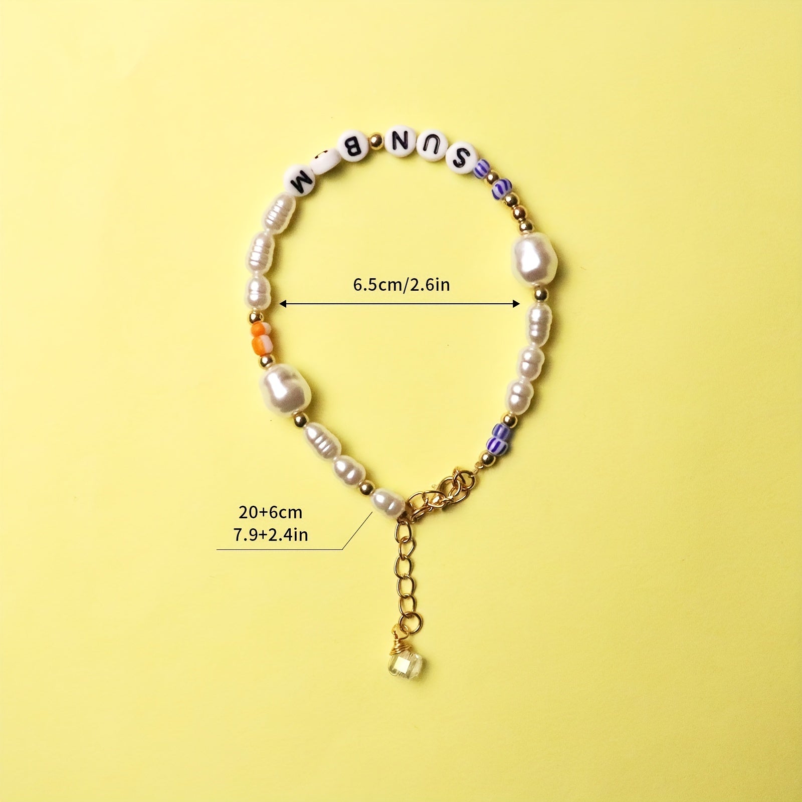This stylish bracelet features faux pearls and beach-inspired design, perfect for summer days. Extendable chain for comfortable wear.