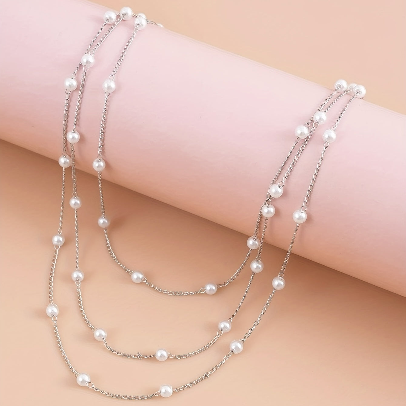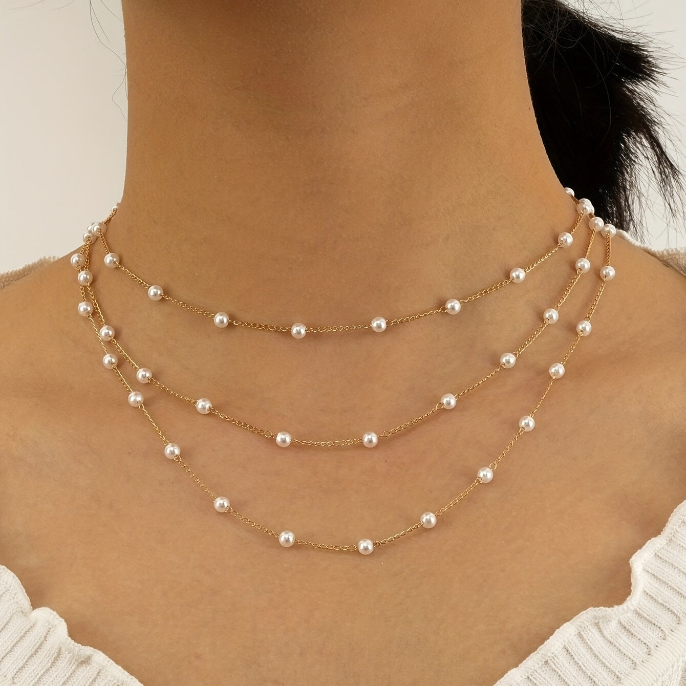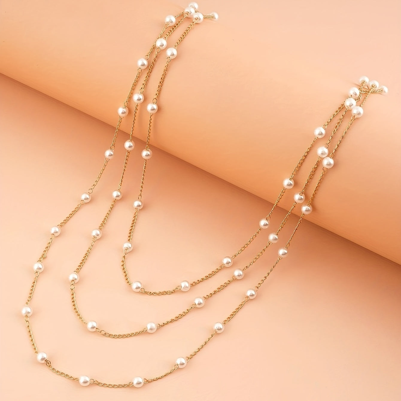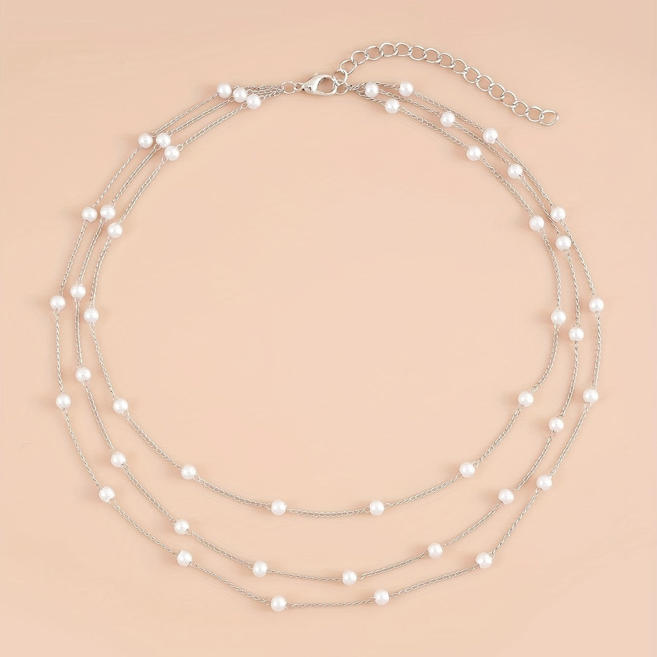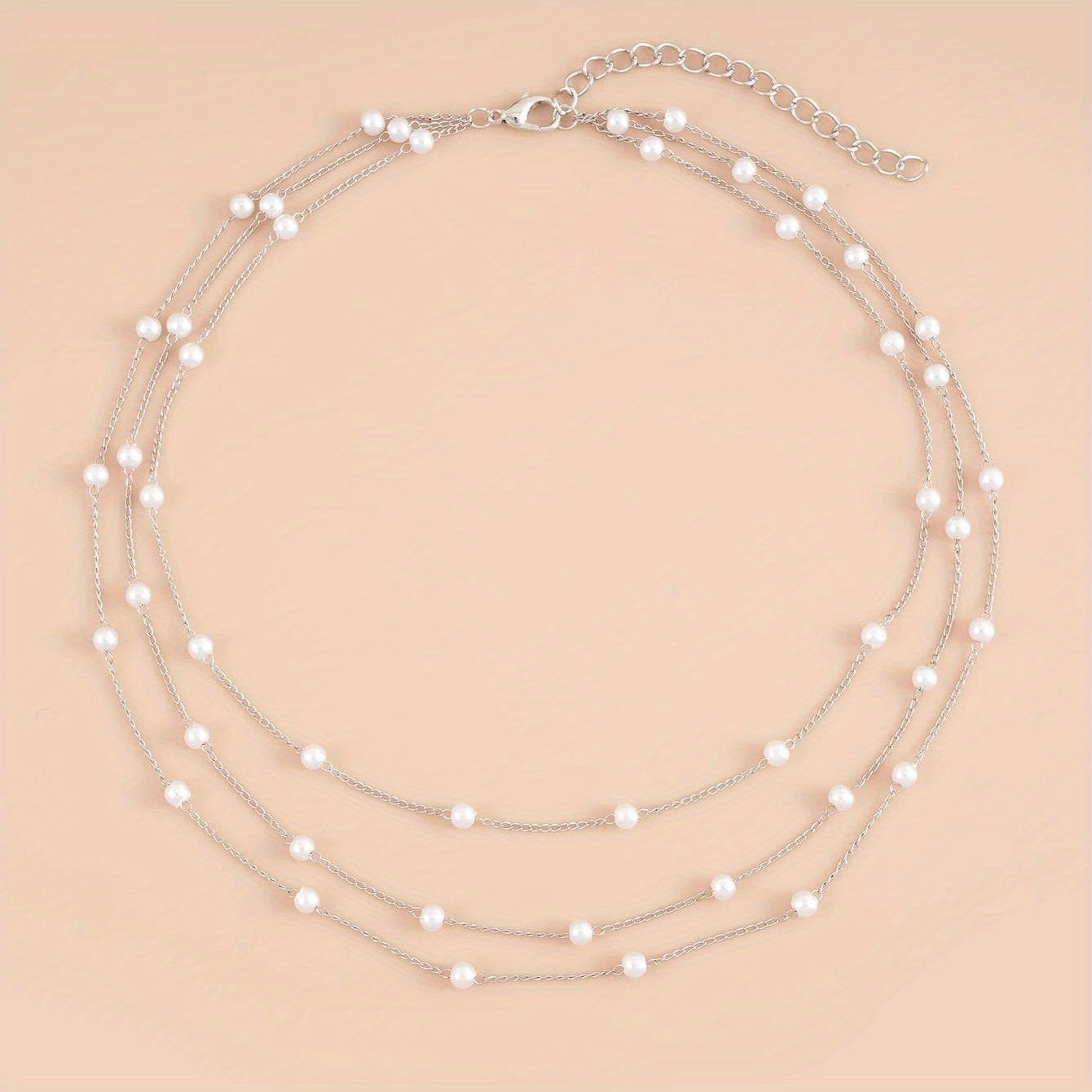 Elevate your style with this multilayer faux pearl chain necklace featuring an 18K plated ornament. It adds a touch of elegance to any outfit.