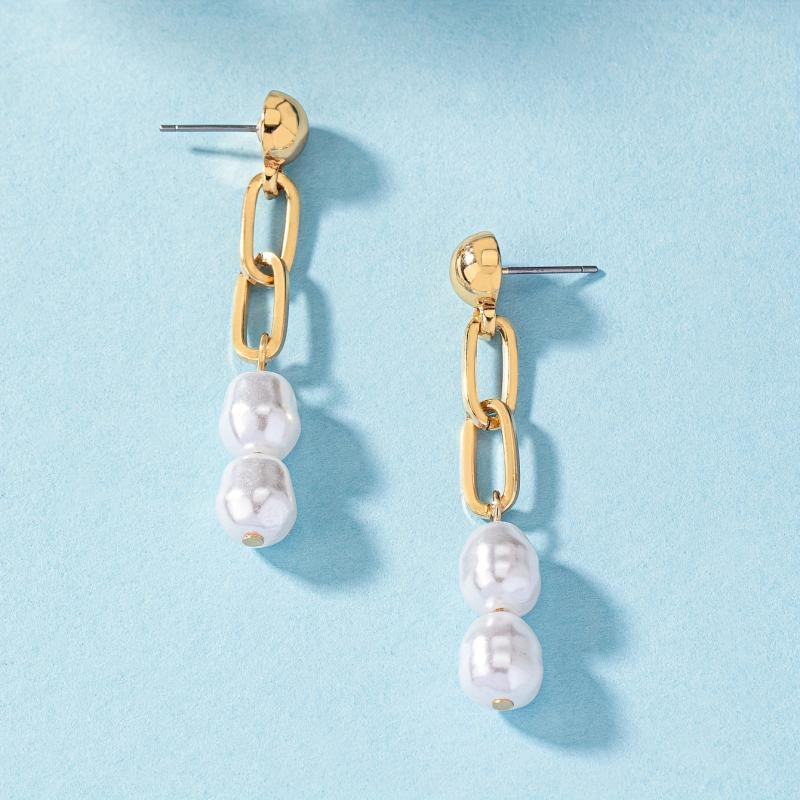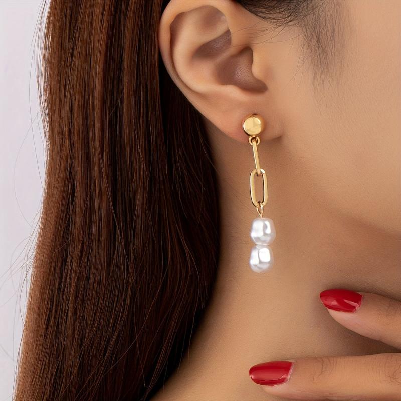 Elevate your casual attire with these elegant faux pearl drop earrings. They are perfect for gifting and add a touch of French-inspired style to any outfit.