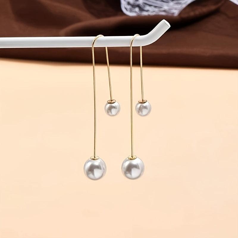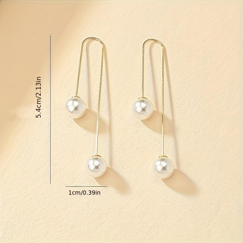 Elegant threader earrings with faux pearl decoration for a sophisticated look.