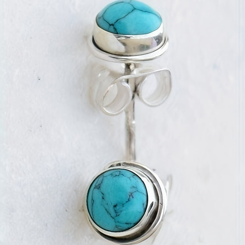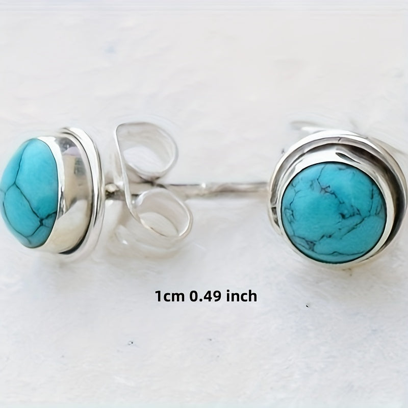 Add a pop of color to your outfit with these light faux turquoise stud earrings. Perfect for everyday wear or special occasions.