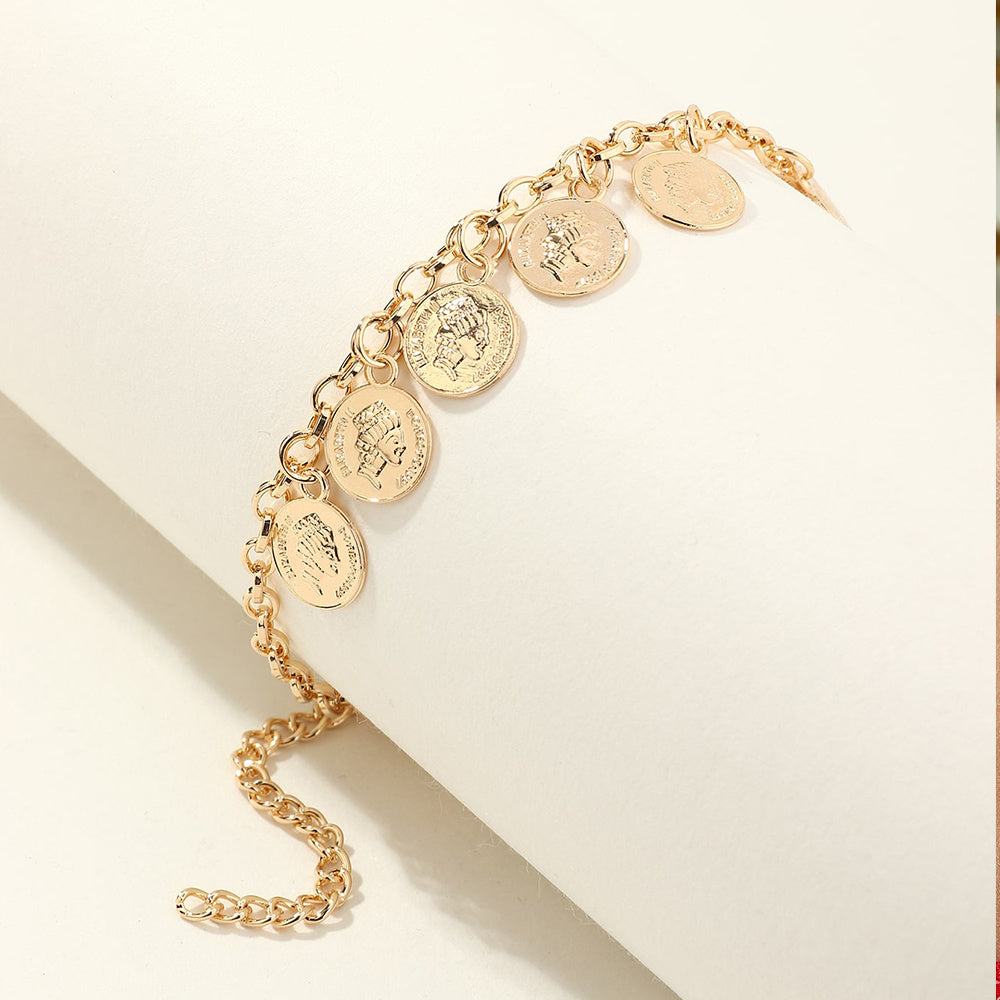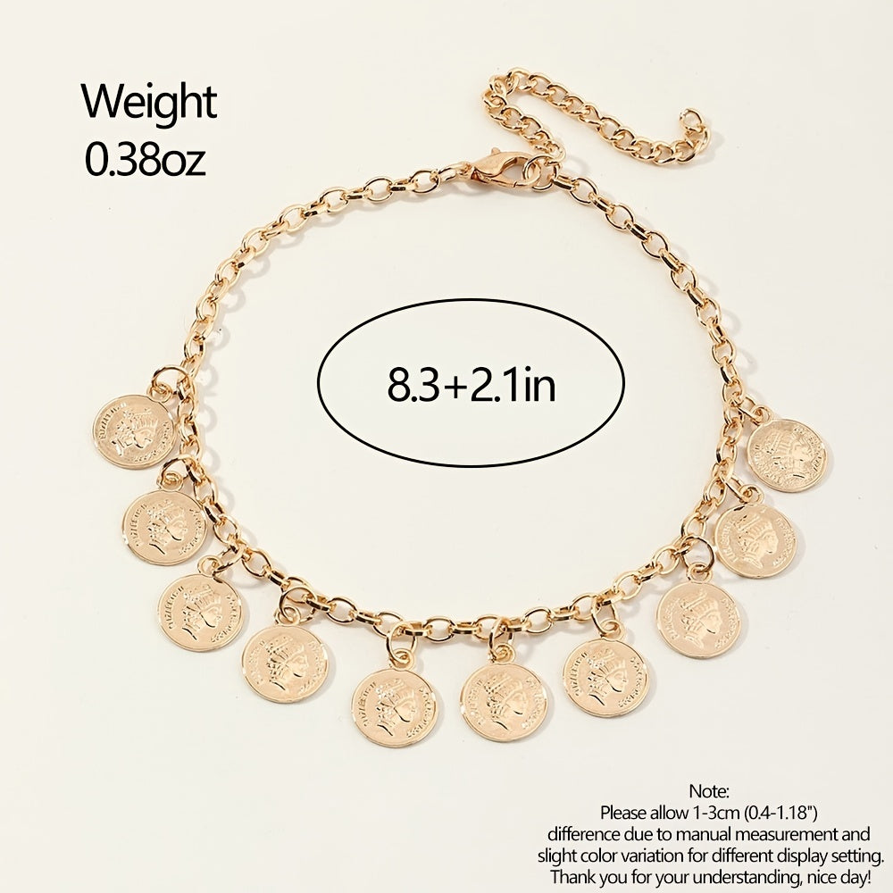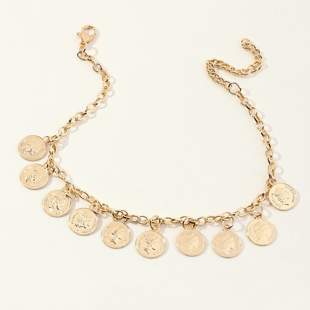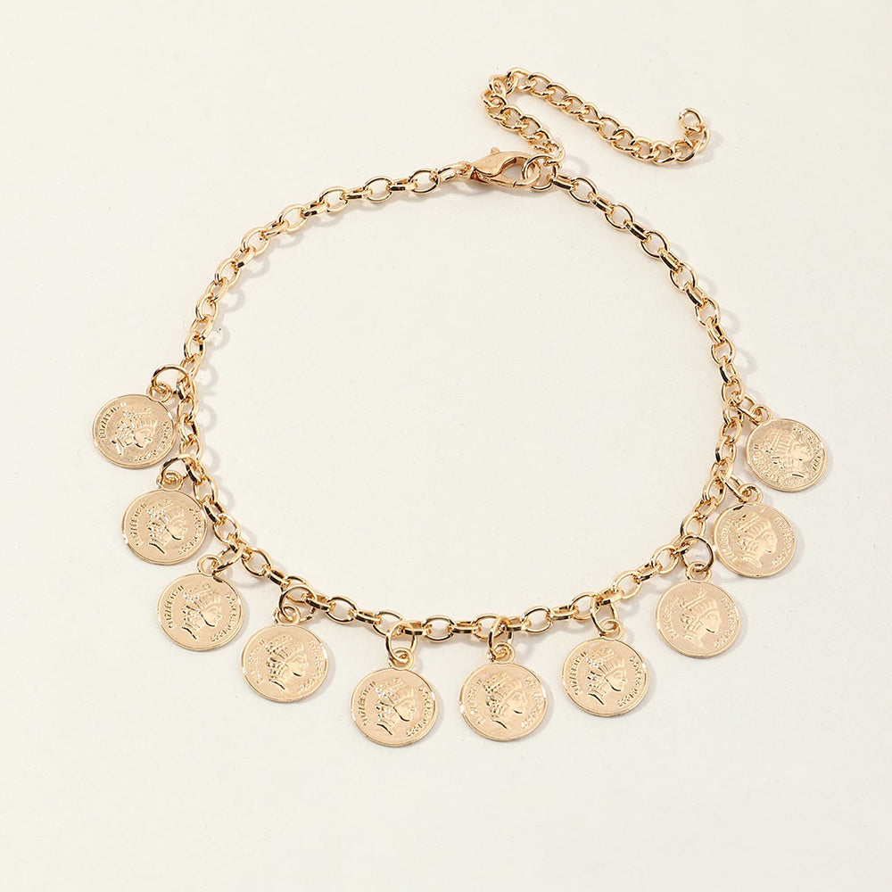 Add a touch of elegance to your ankle with this stylish figure engraved round charm anklet.