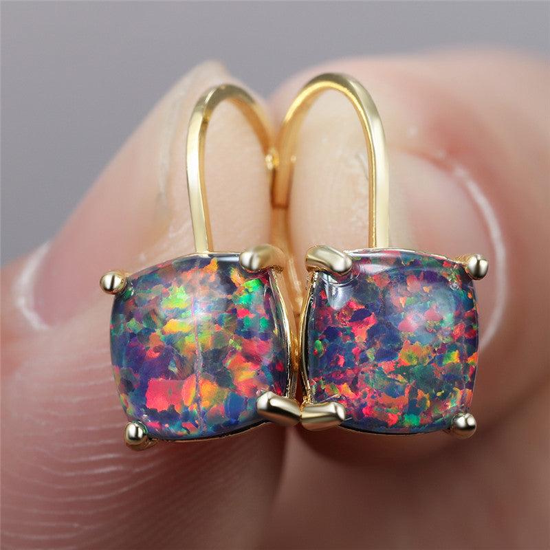 Enhance your look with these exquisite fire opal earrings, perfect for weddings or special occasions. Made with small square crystals, these hoop earrings are a stunning addition to any outfit.