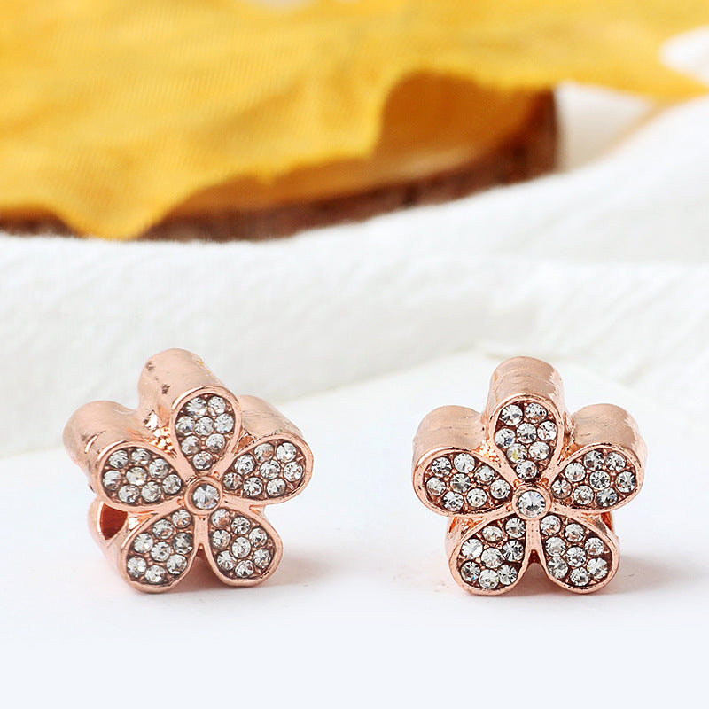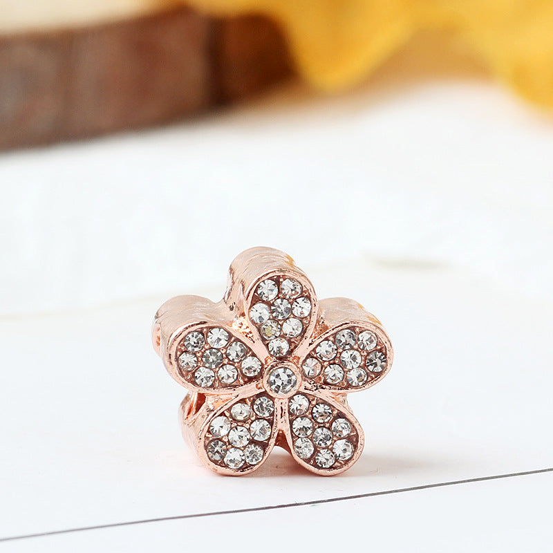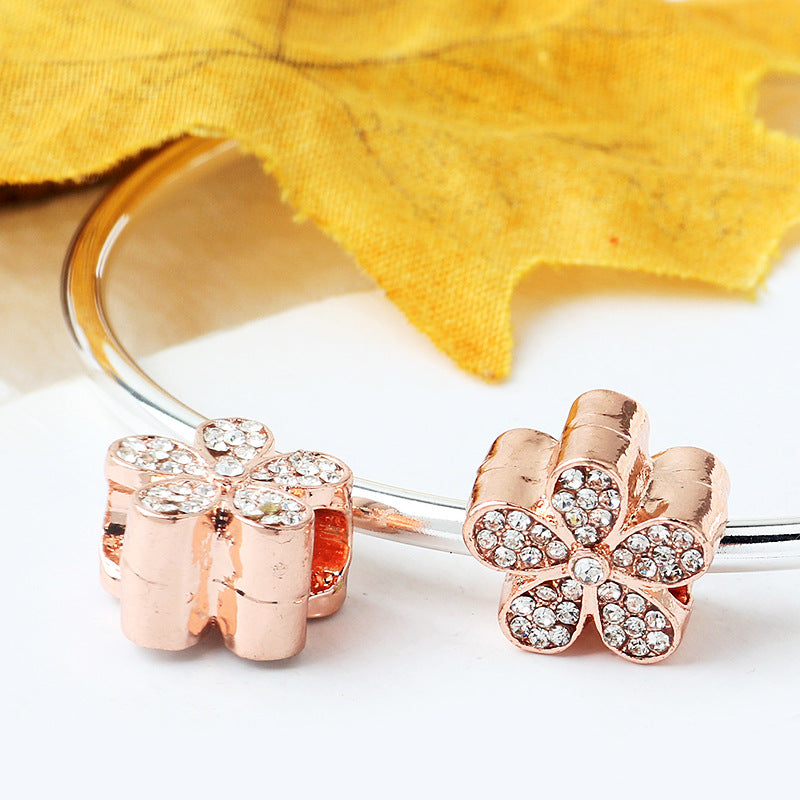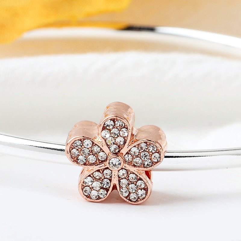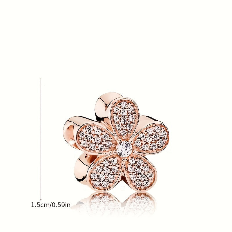 This elegant bracelet features a stunning five petal flower design adorned with faux diamond beads. It is perfect for adding a touch of sparkle to any outfit.