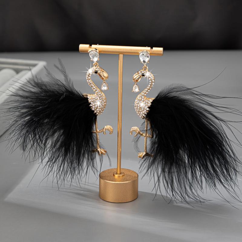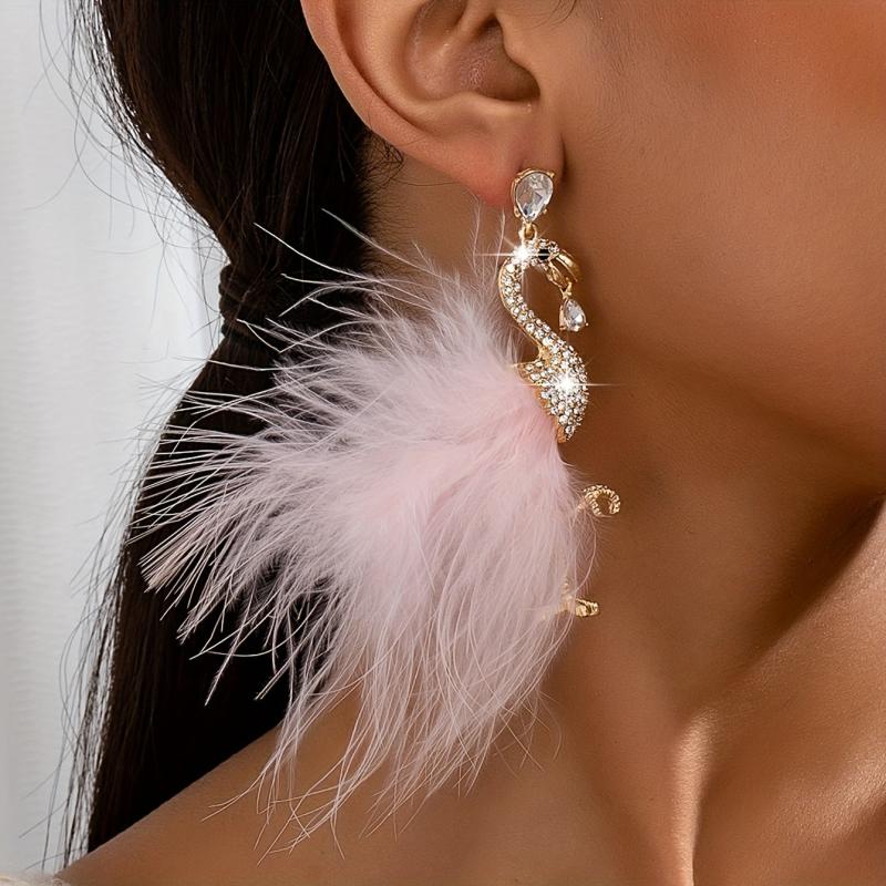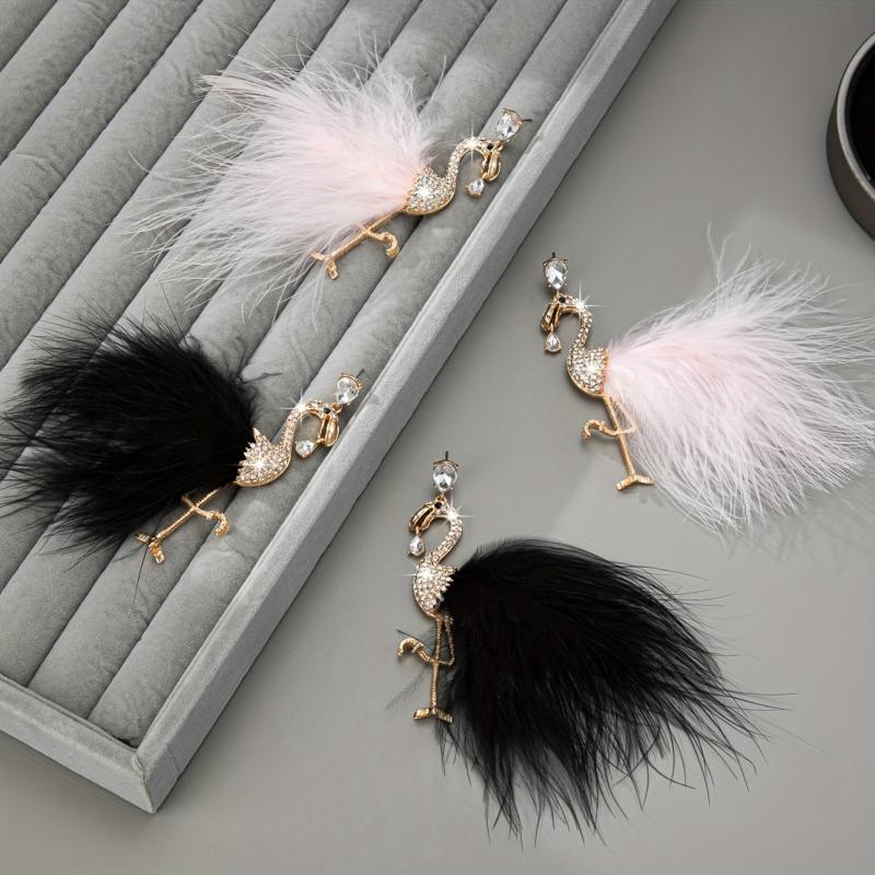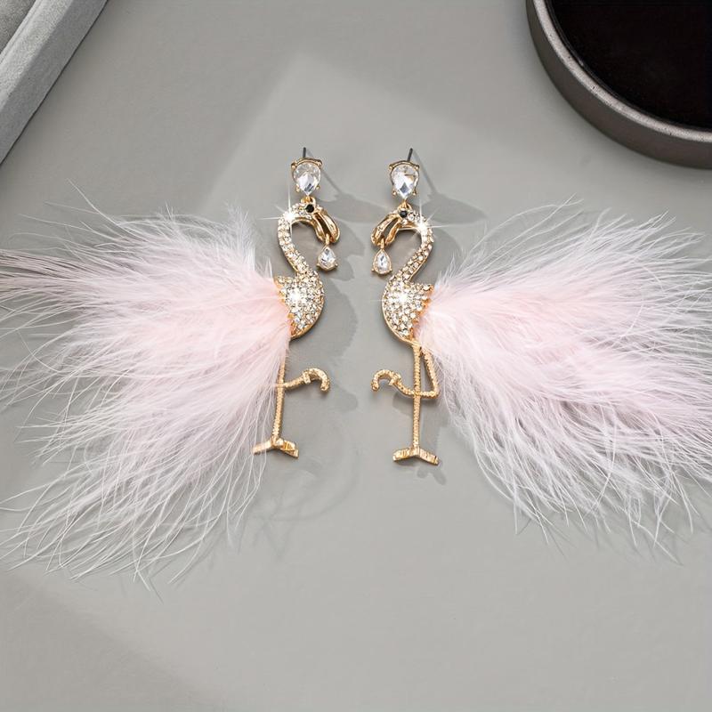 Add a touch of fun to your outfits with these Pink Feather Flamingo Earrings featuring sparkling rhinestone accents. Perfect for parties, birthdays, dates, and vacations.