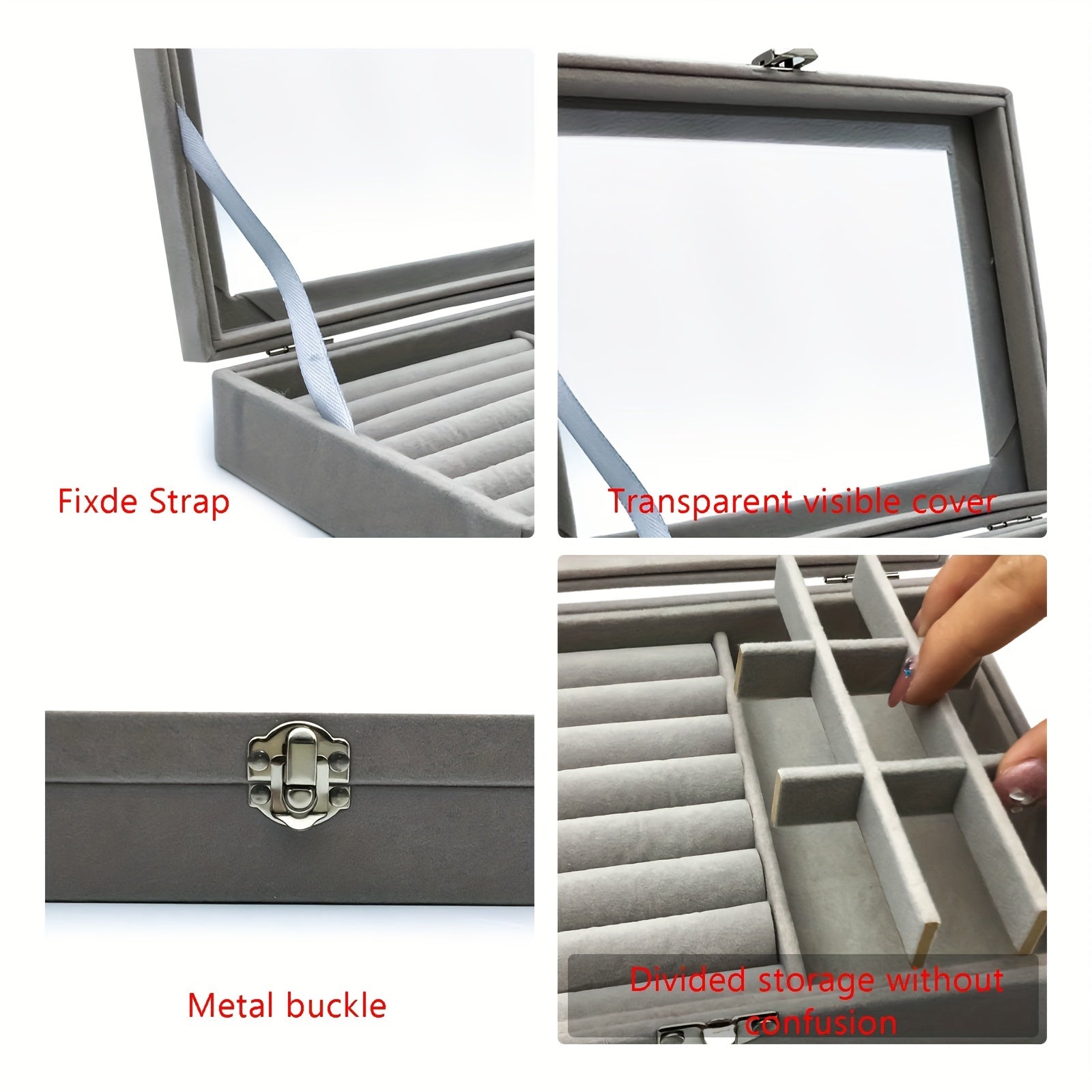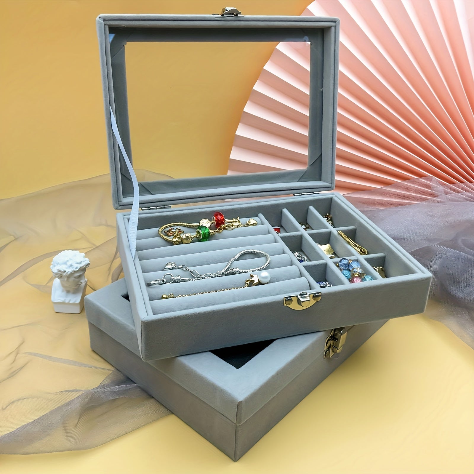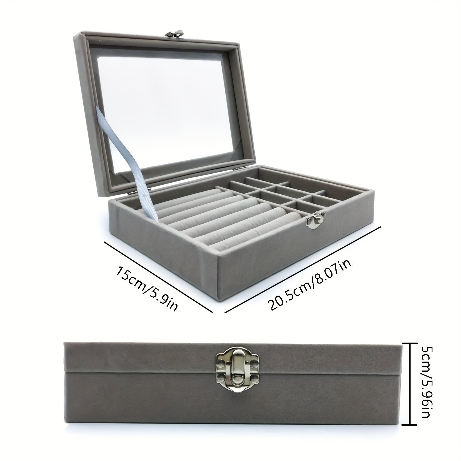 Keep your jewelry organized and dust-free with this flannel storage box featuring a clear visible lid. Ideal for earrings, rings, and necklaces.