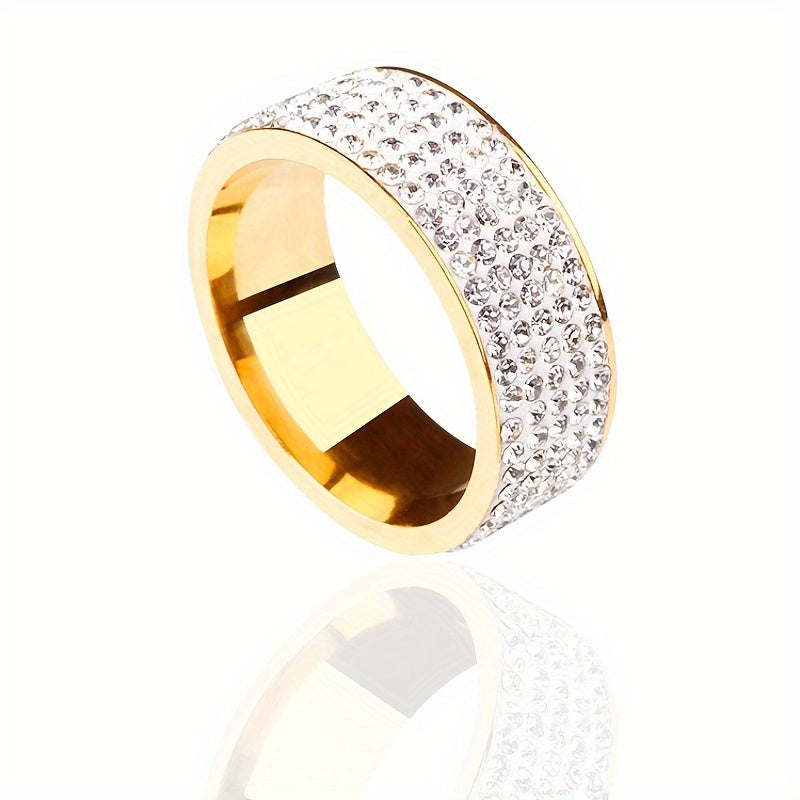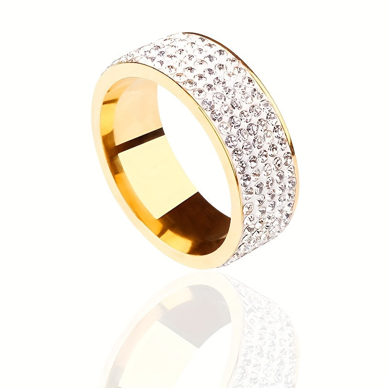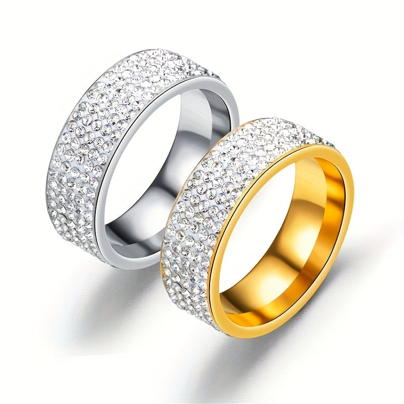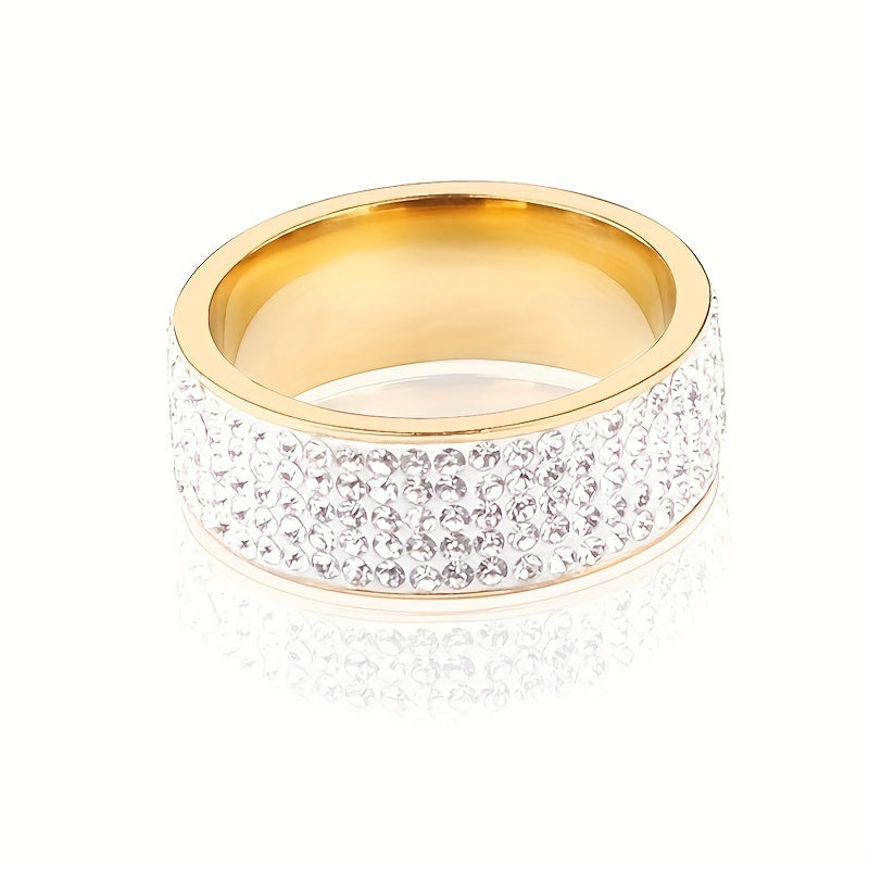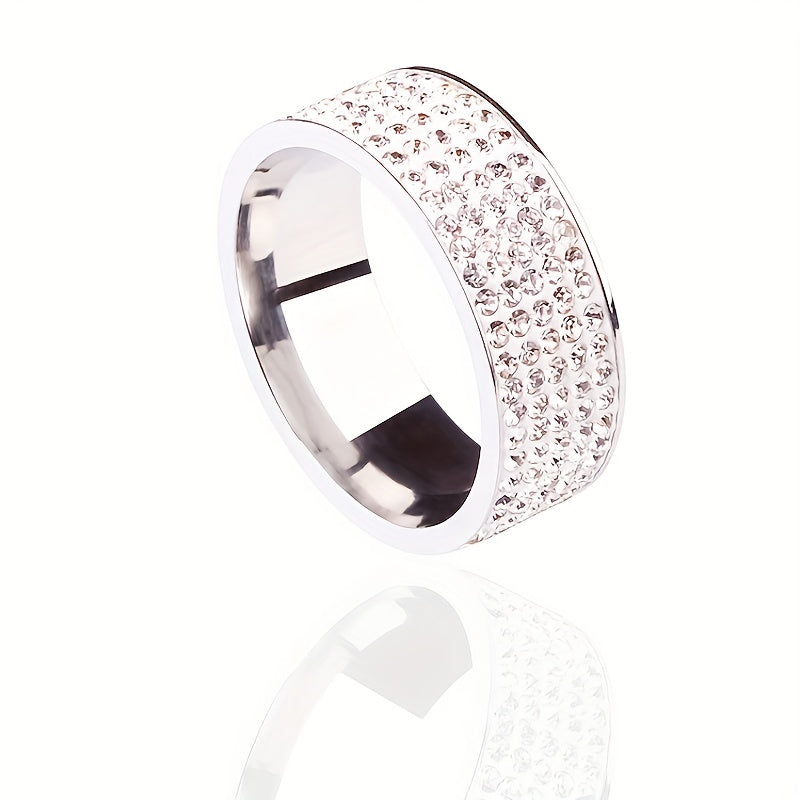 Elegant and stylish flat diamond ring with five rows of artificial diamonds, perfect for adding sparkle to any outfit.