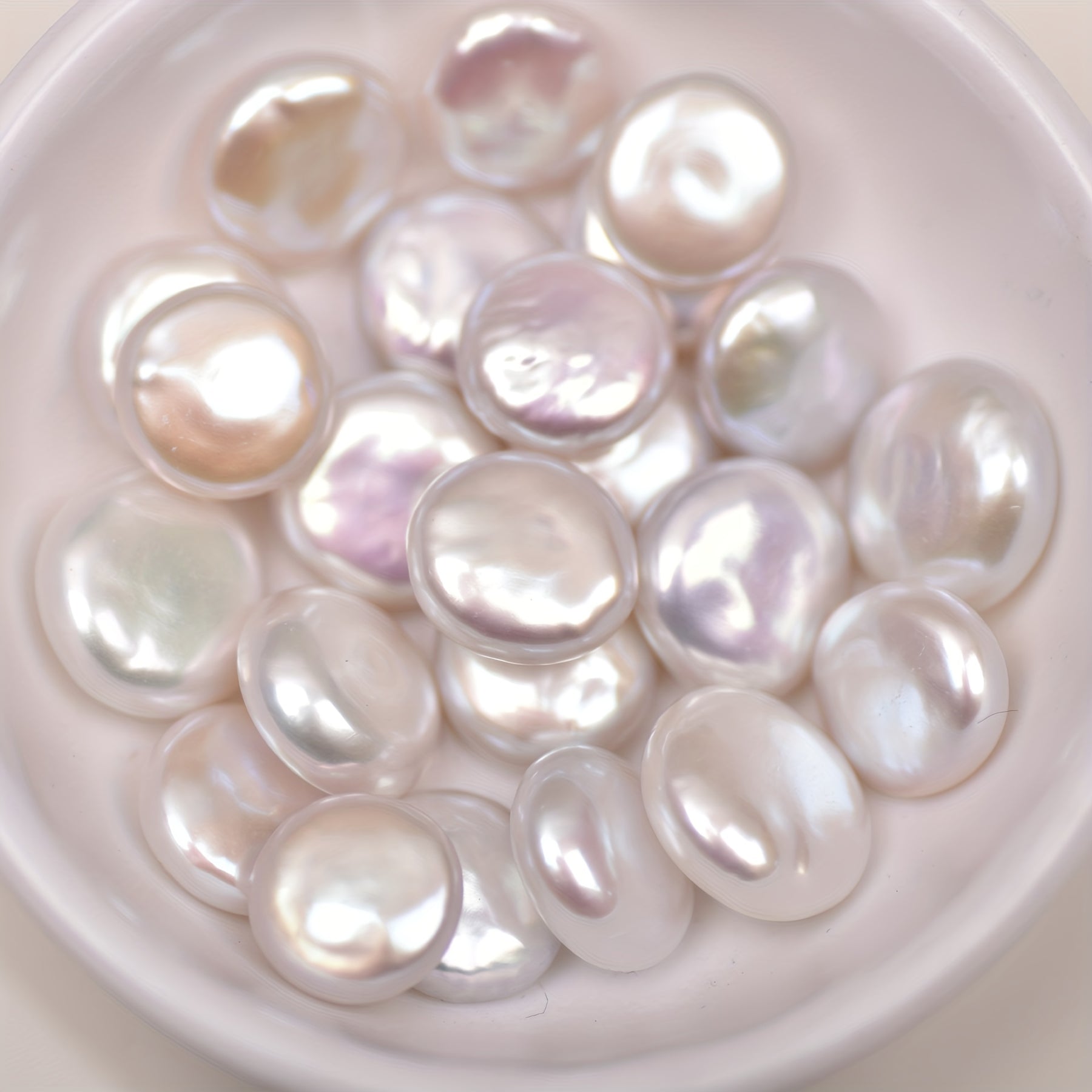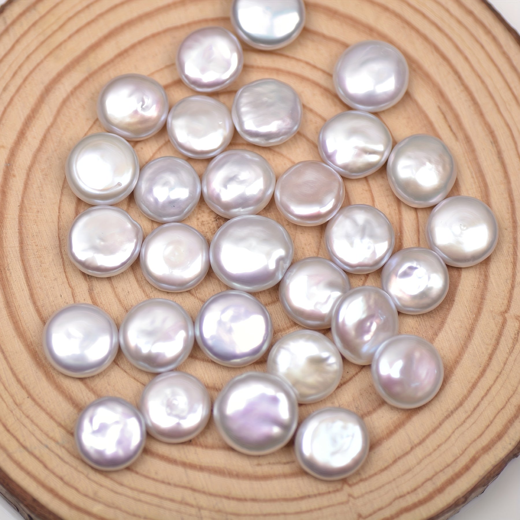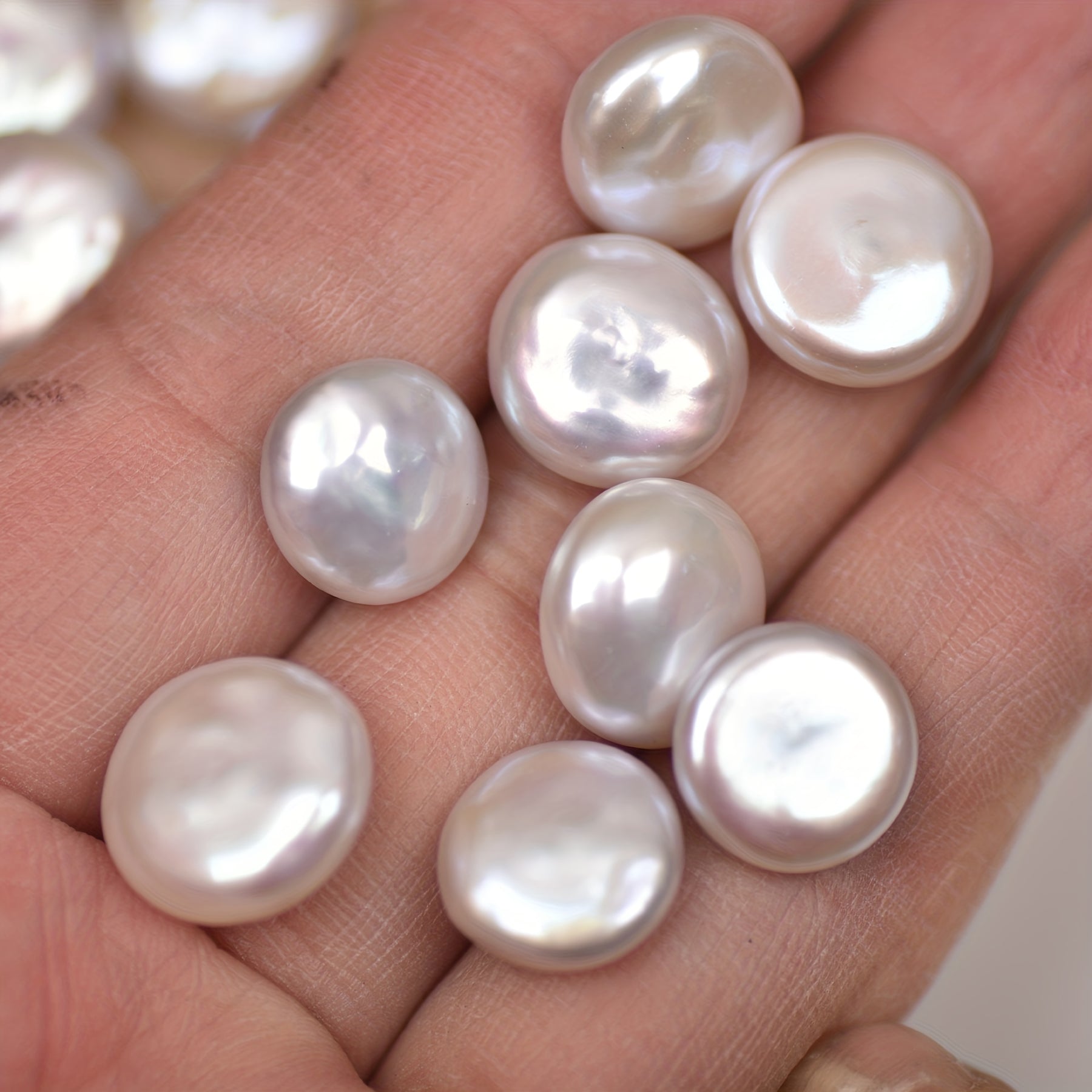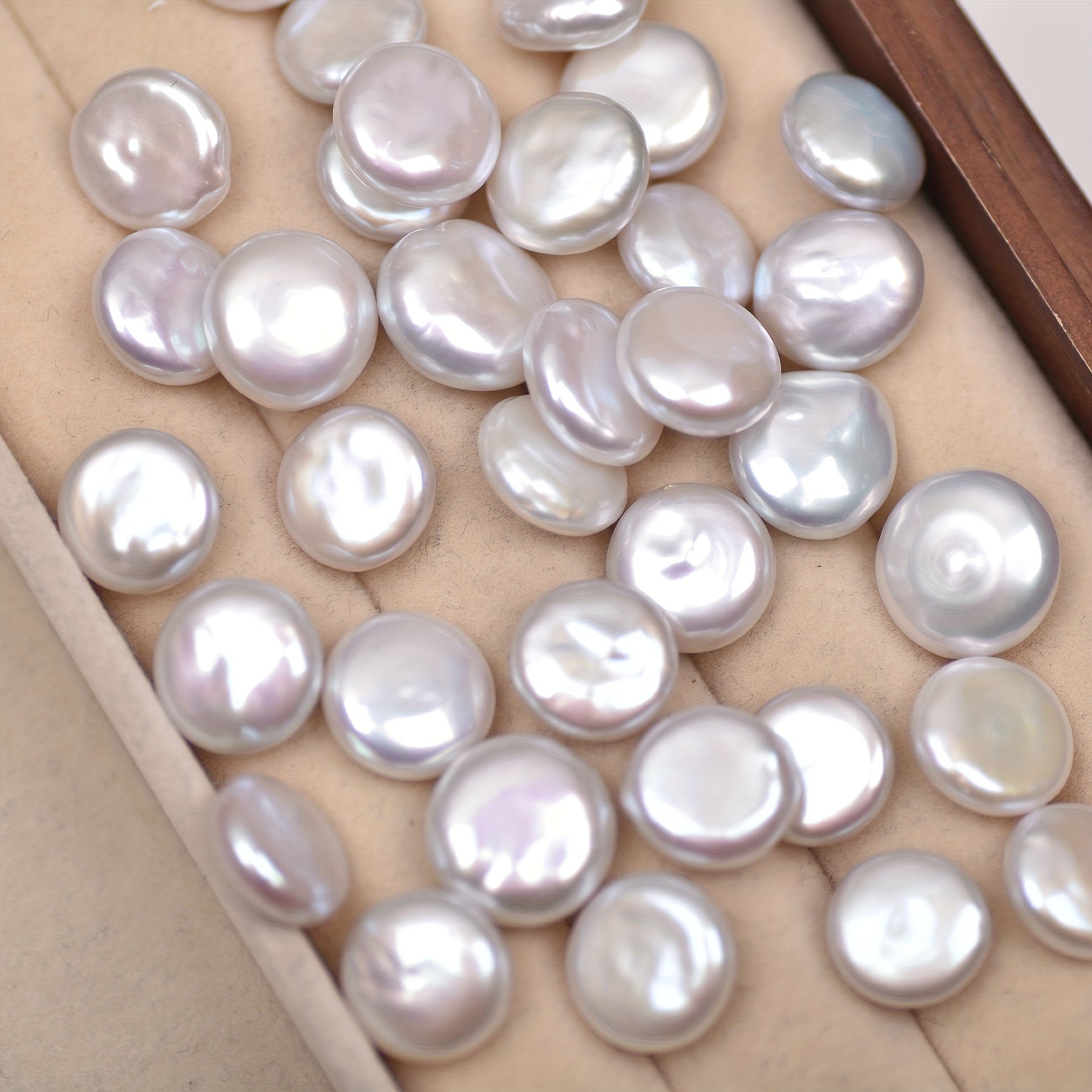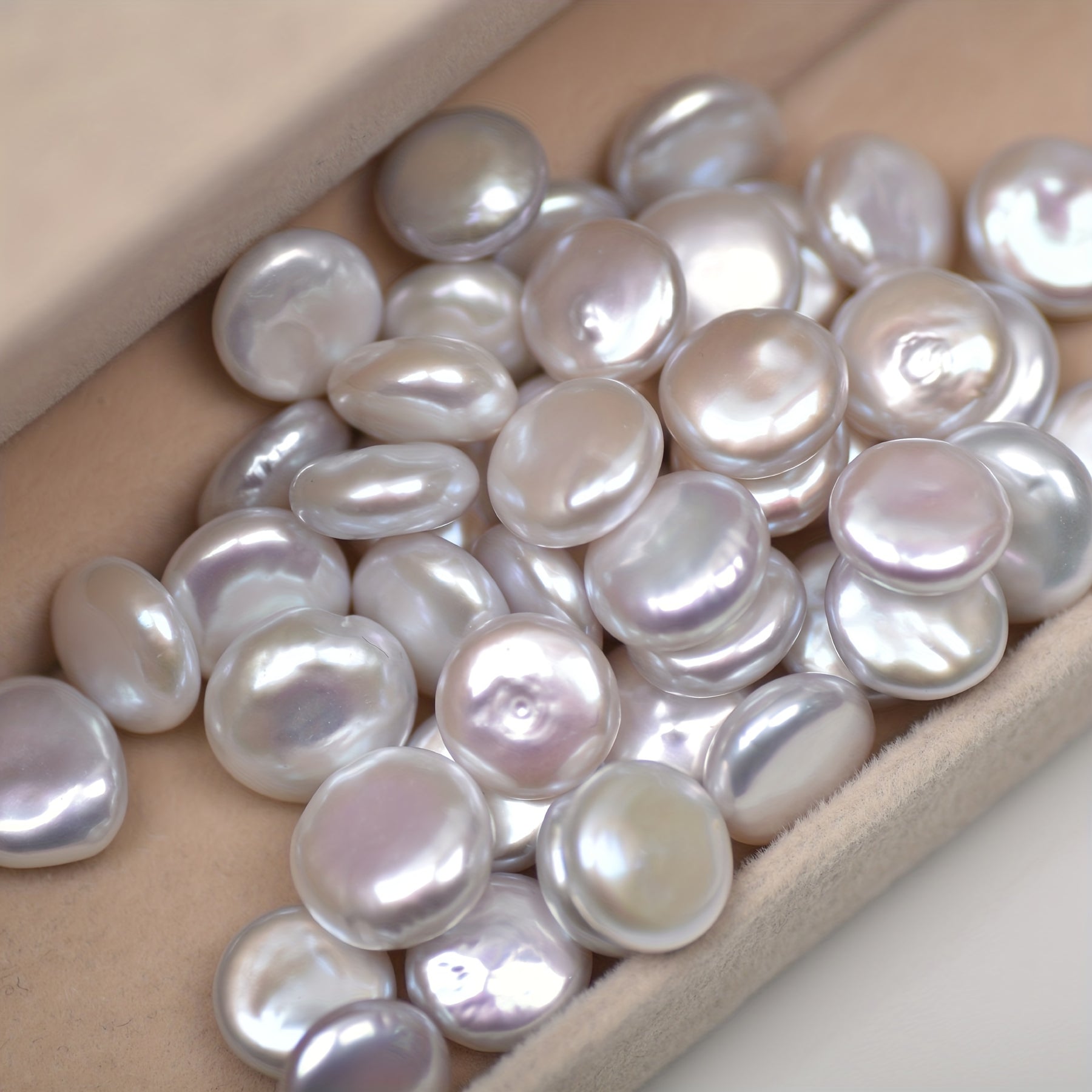 This flat round freshwater pearl measures 9-10mm in size and has no hole, perfect for creating your own earrings, bracelets, necklaces, and other accessories.