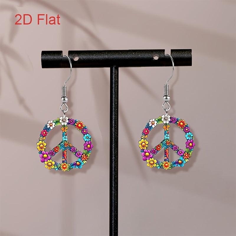 Flat Vibrant Peace Sign Flower Dangle Earrings