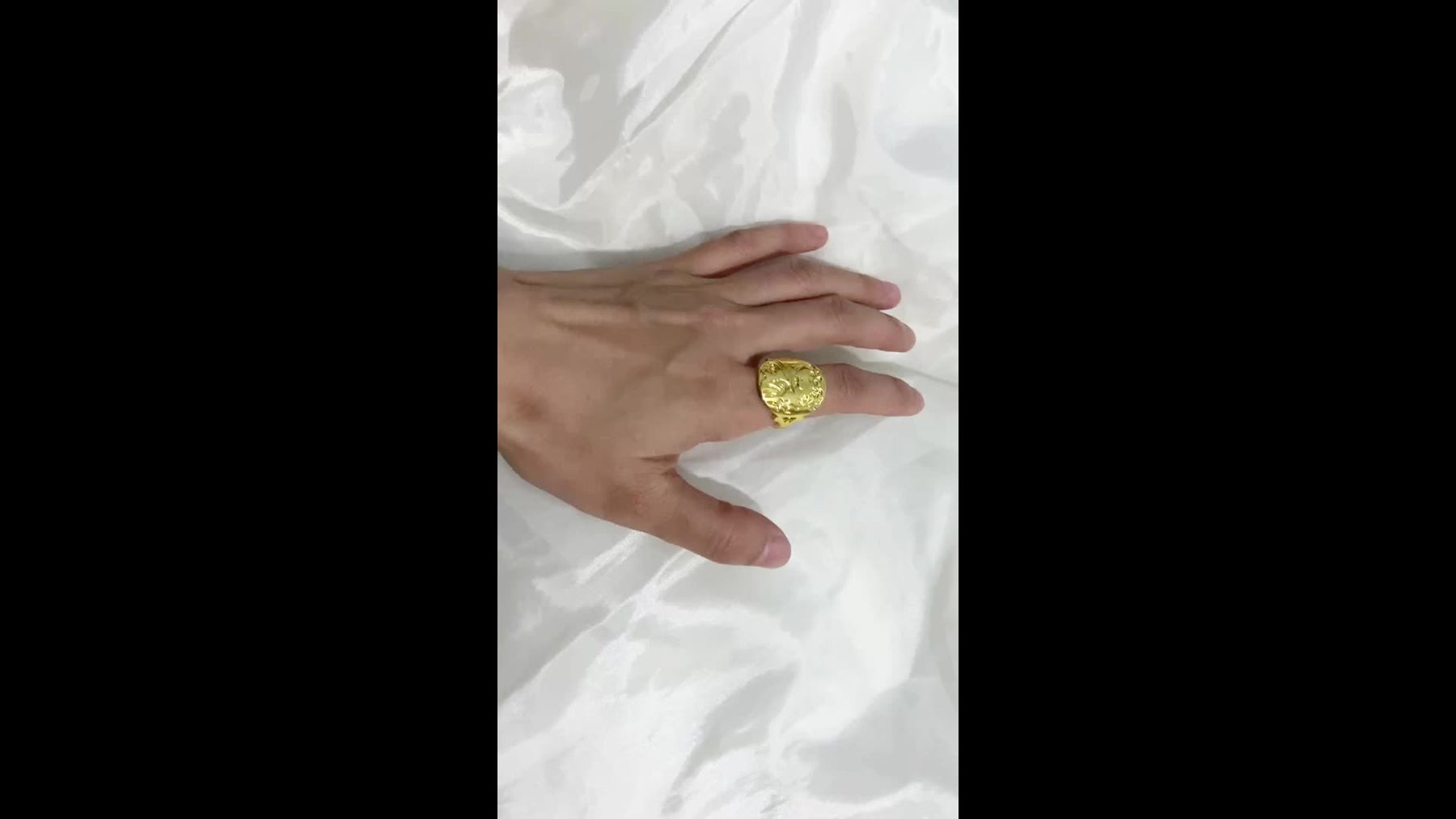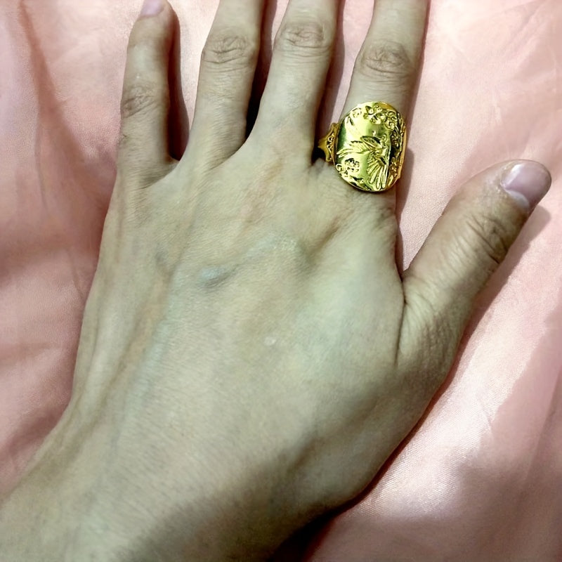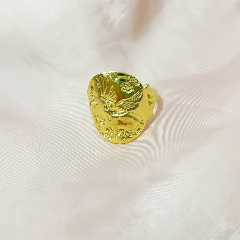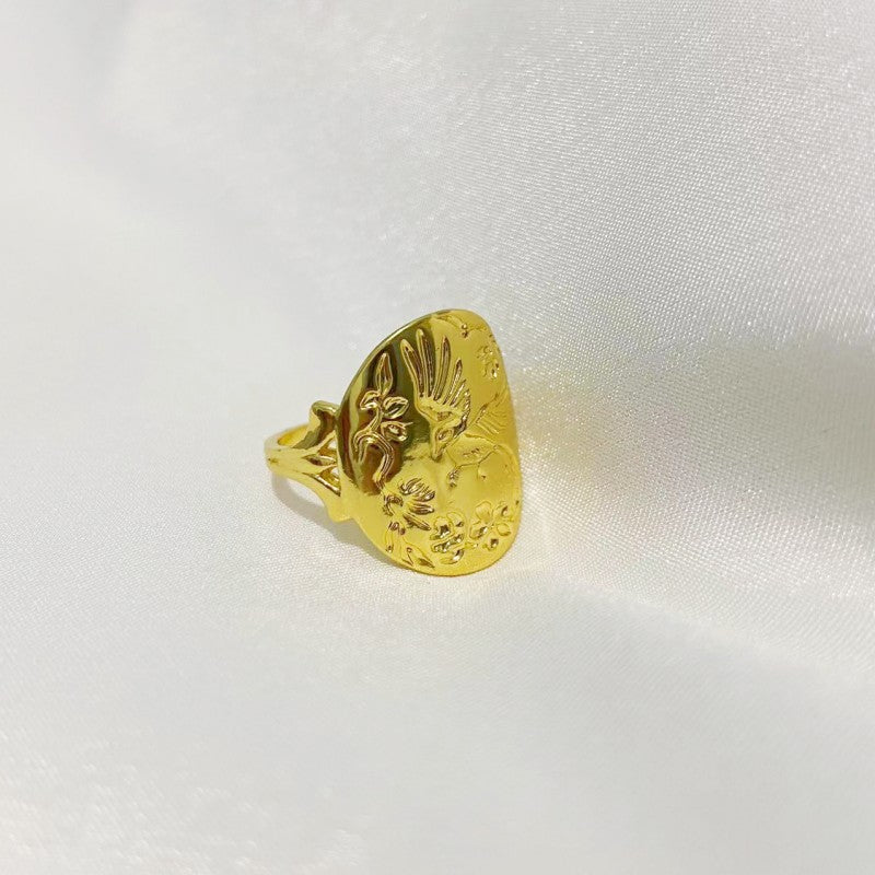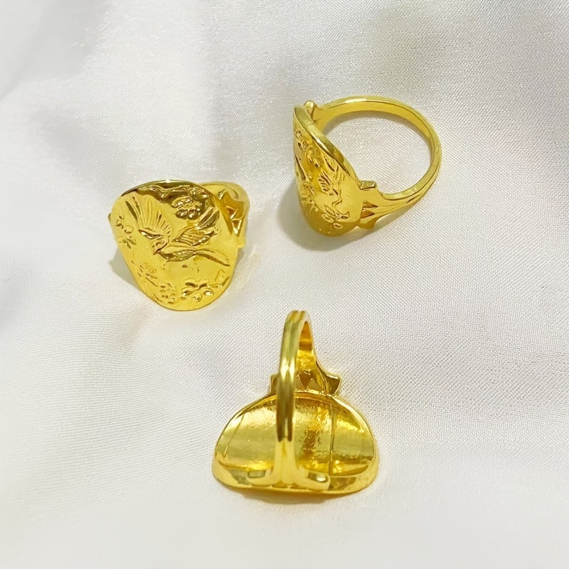 Exquisite men's ring with a floating pattern carved design featuring bird and flower elements, made of high-quality golden alloy. Perfect birthday gift idea.
