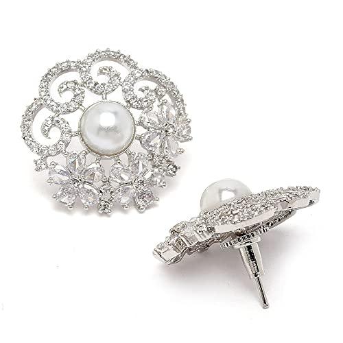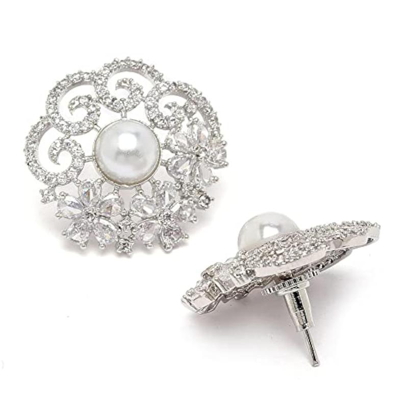 Add a touch of elegance with these stunning floral-shaped studs earrings featuring sparkling American Diamonds. The rhodium-plated silver tone adds a luxurious look.