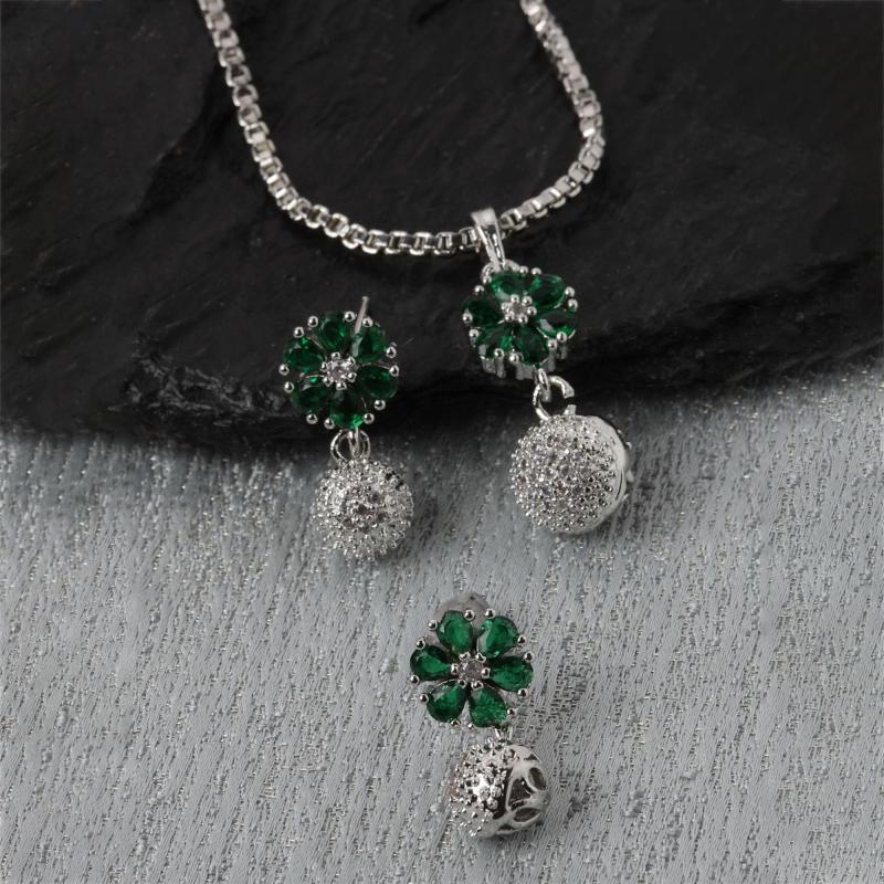 Elegant jewellery set featuring cubic zirconia studded floral design. Perfect for special occasions or daily wear.