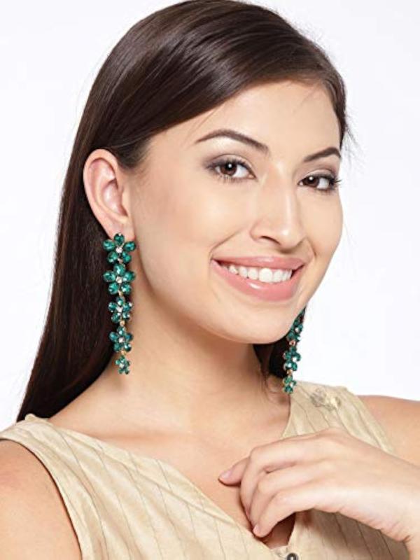 Elegant floral dangler earrings plated with beautiful design, perfect for any occasion.