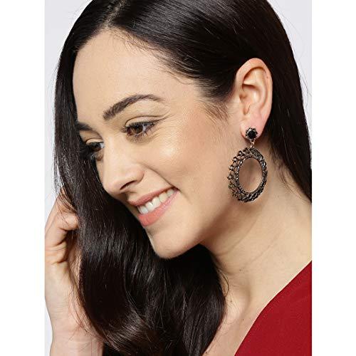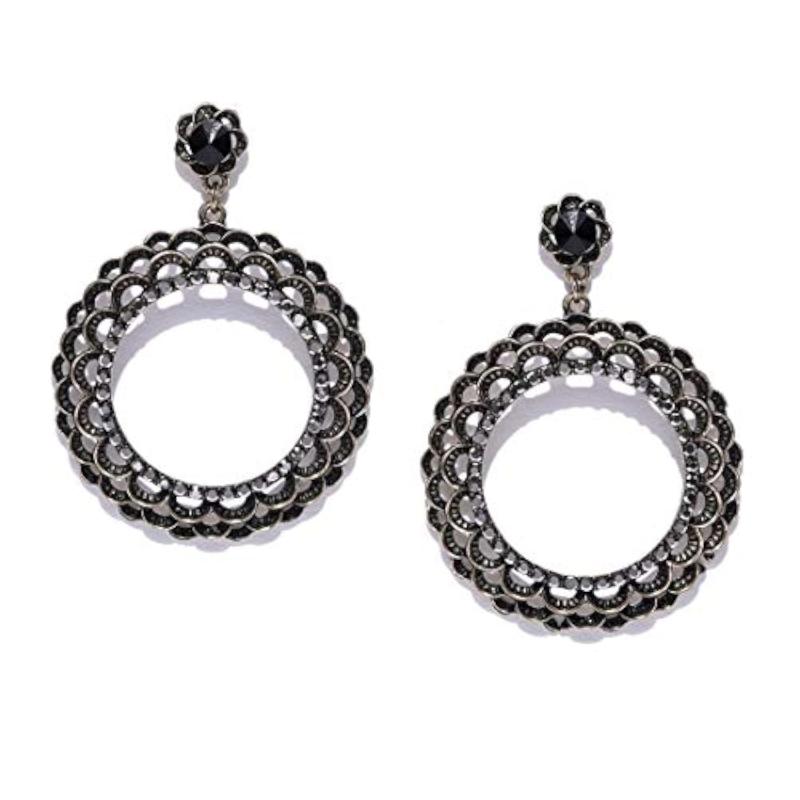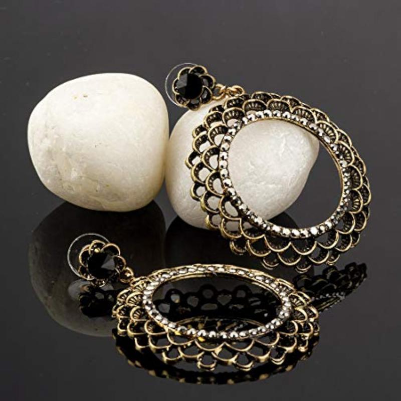 Elegant and stunning floral design drop earrings crafted in oxidized metal for a unique look.