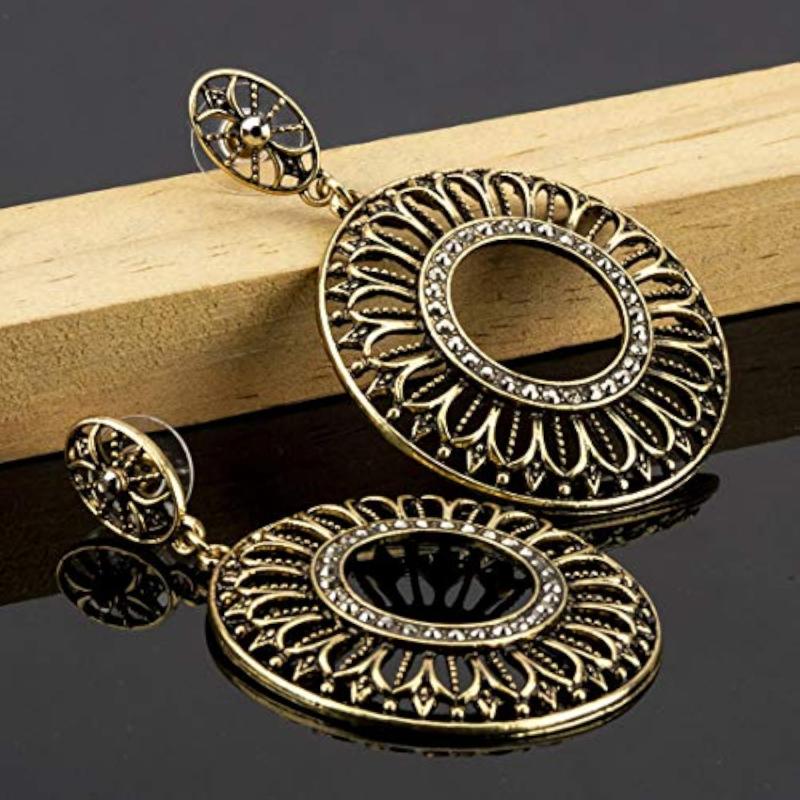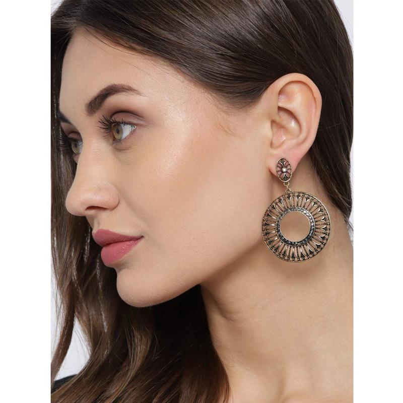 Make a bold fashion statement with these beautiful floral oxidized drop earrings. Perfect for adding a touch of elegance to any outfit.