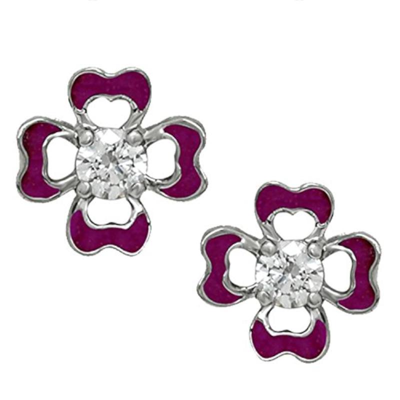 These elegant stud earrings feature a floral design in pink hues, adorned with sparkling Swarovski Zirconia.