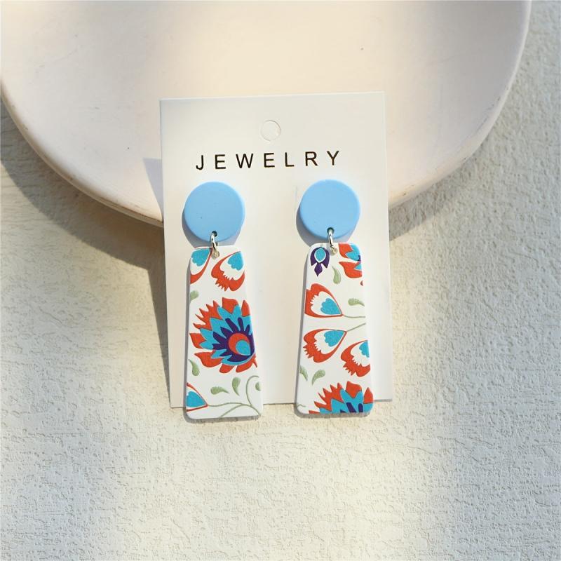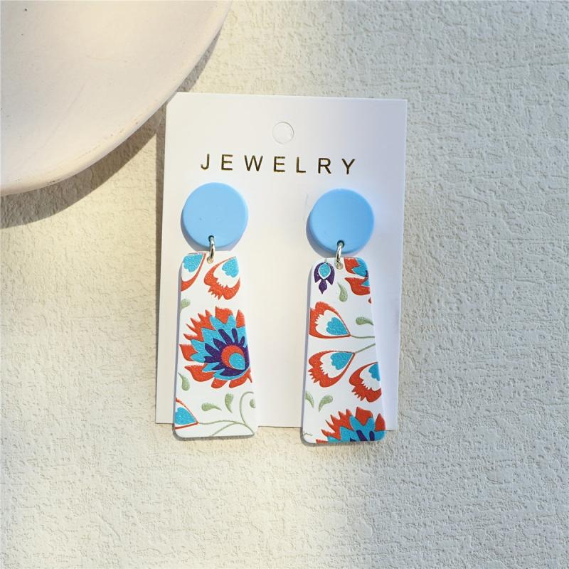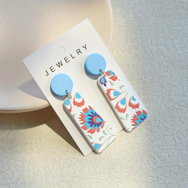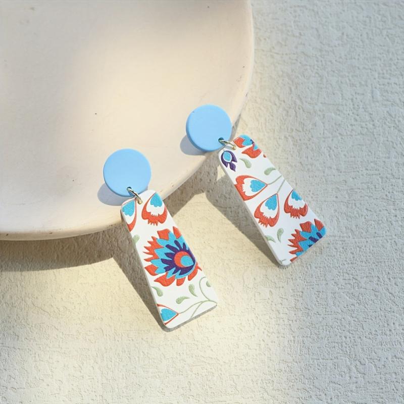 Elevate your daily style with these charming earrings. The acrylic drops feature a red floral print and clay texture, complemented by stainless steel ear needles.