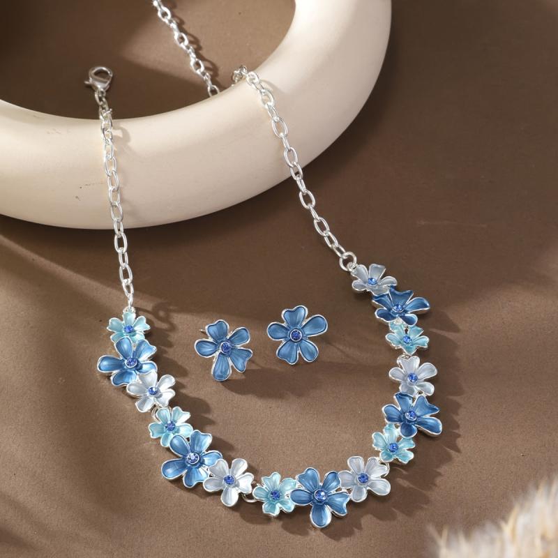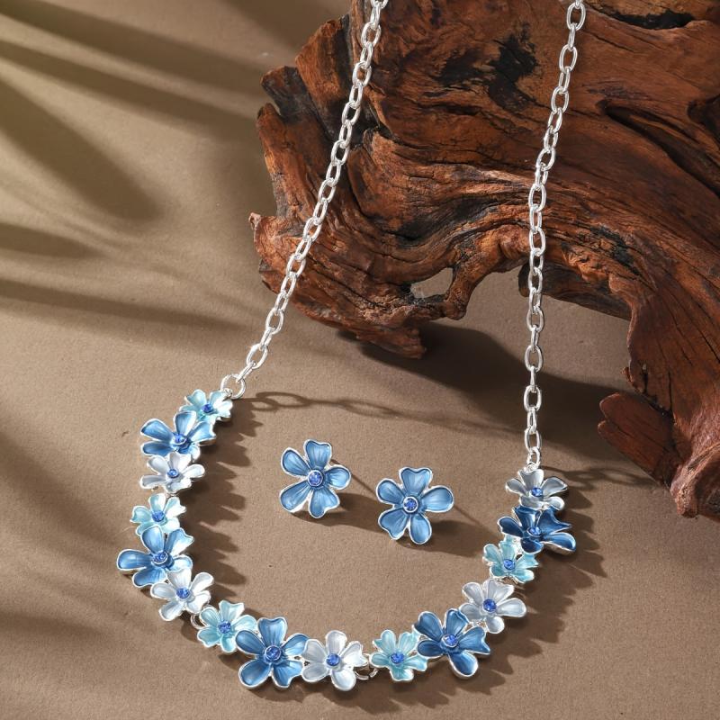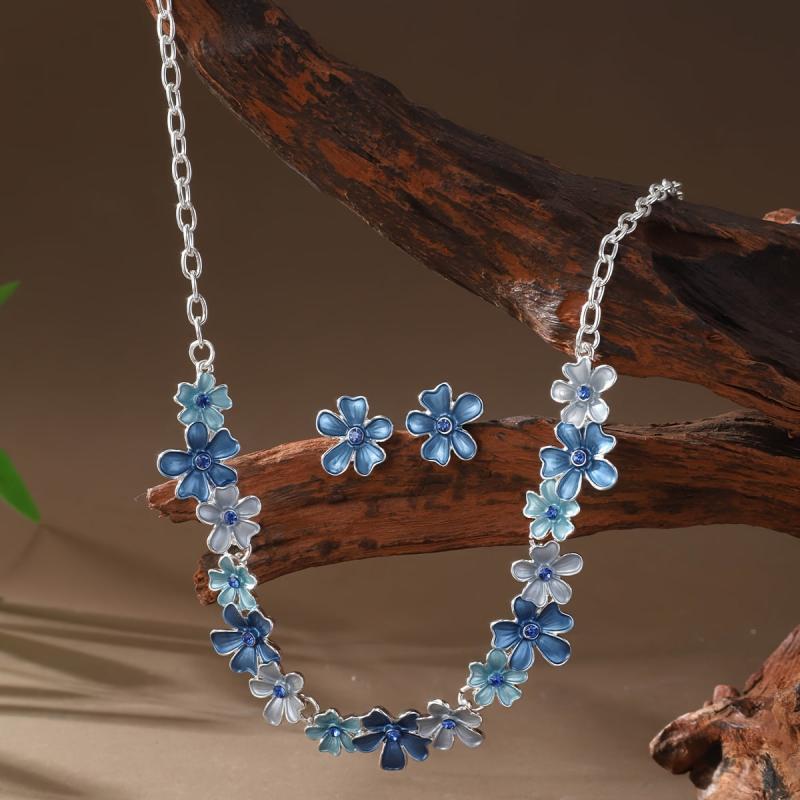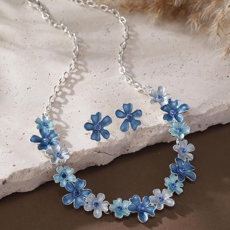 This elegant jewelry set includes a pair of earrings and a necklace featuring large flower pendants. Perfect for special occasions like banquets or as a gift for Mother's Day.