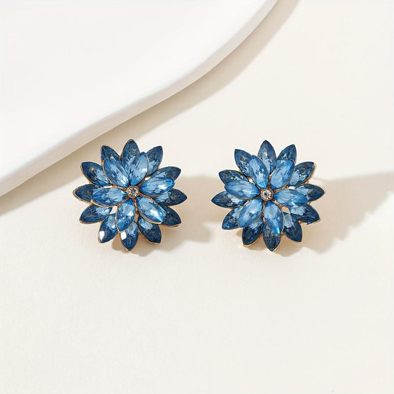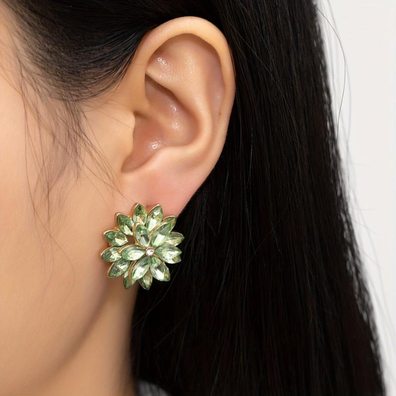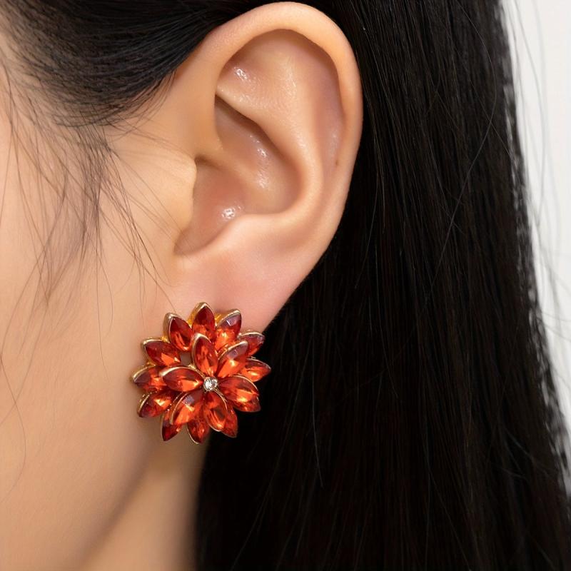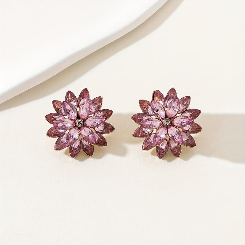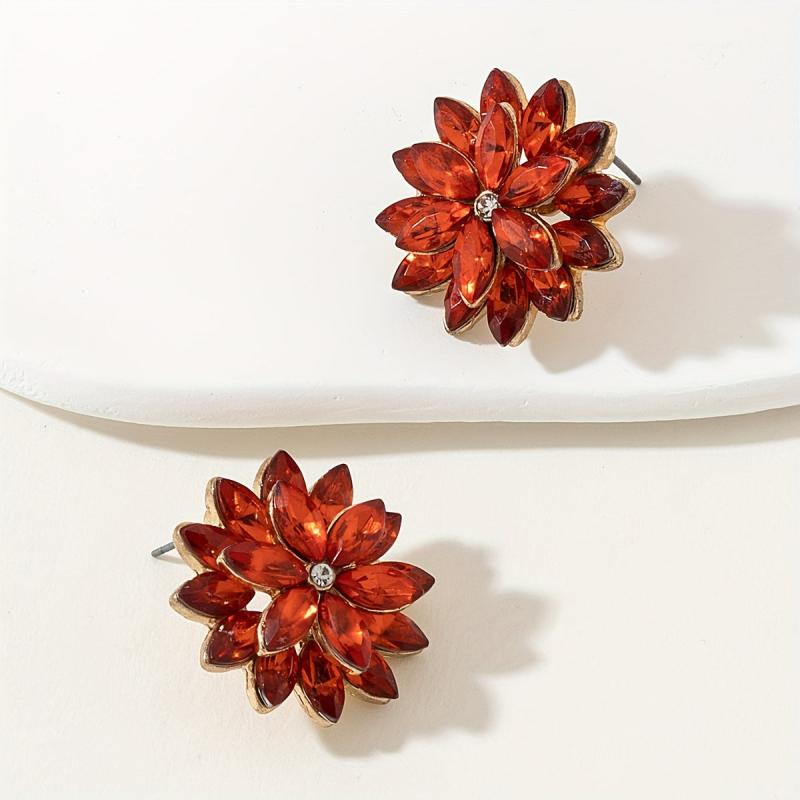 Add a touch of sparkle to your look with these unique flower shaped stud earrings. Made from alloy with 18K gold plating, these earrings feature rhinestones that add a glamorous touch. Perfect for a sexy and stylish look on a date night.