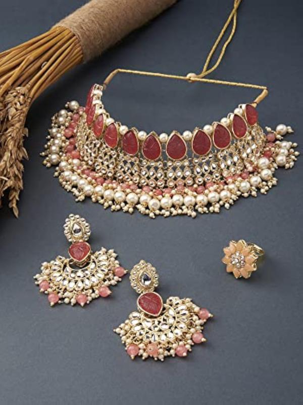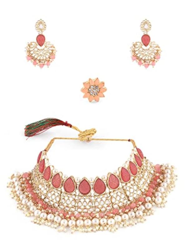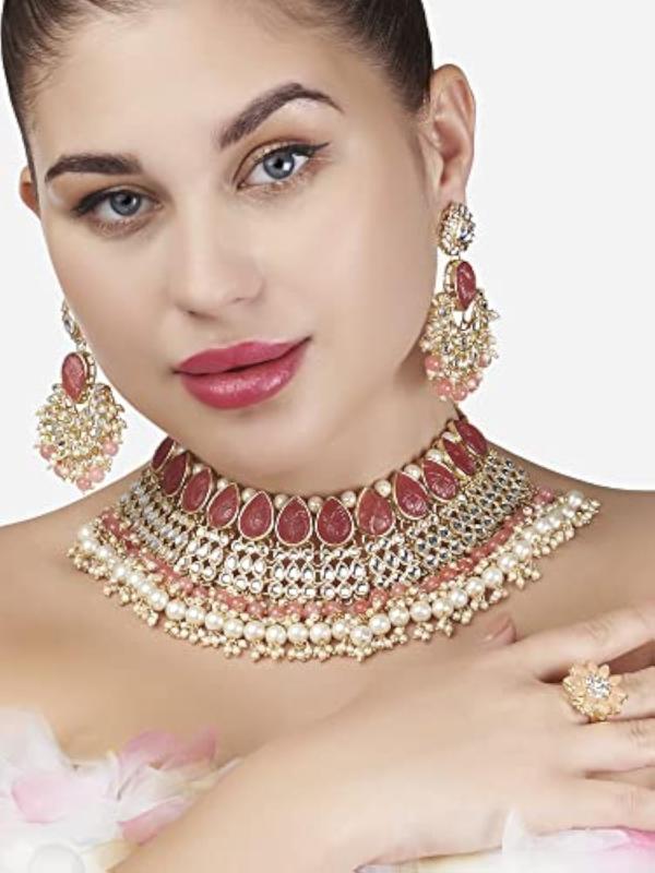 Elegant and charming flower stones cluster choker set for women.