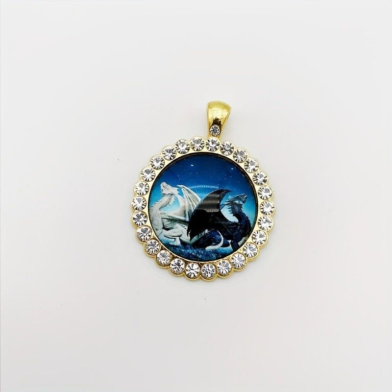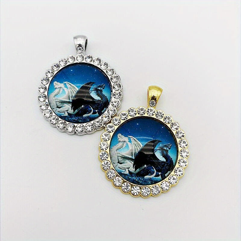 This set includes a flying dragon glass pendant that can be used as a necklace or earrings for a DIY jewelry project.