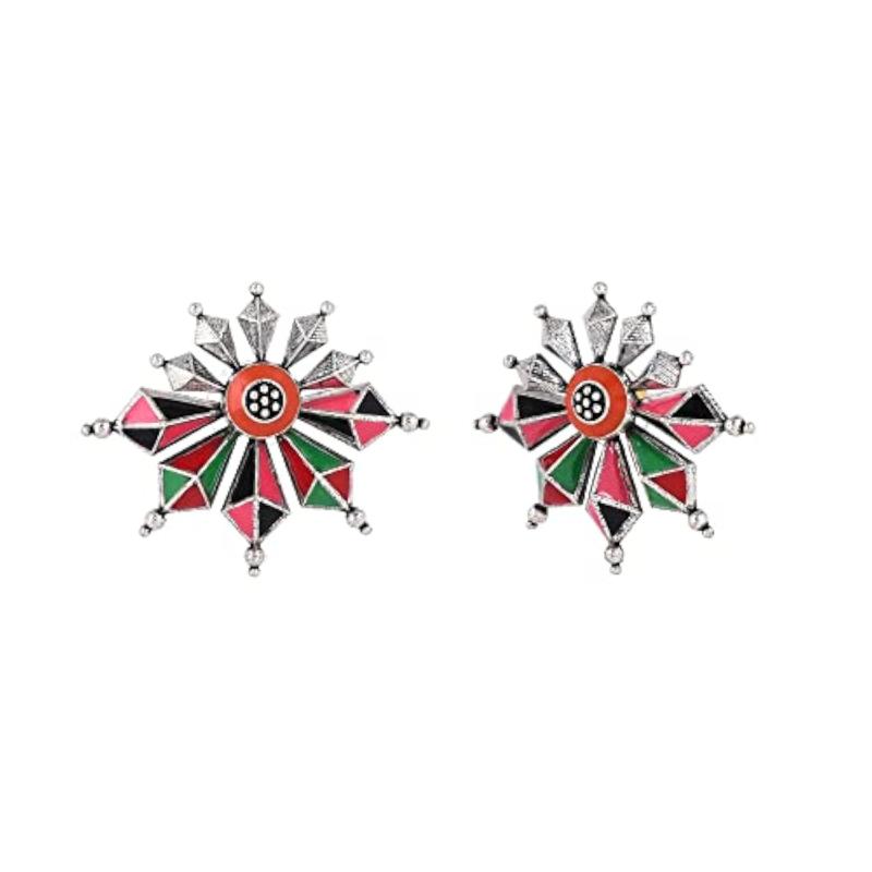 Elevate your style with these colorful folklore inspired enamel earrings.