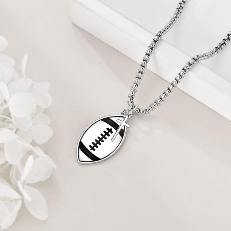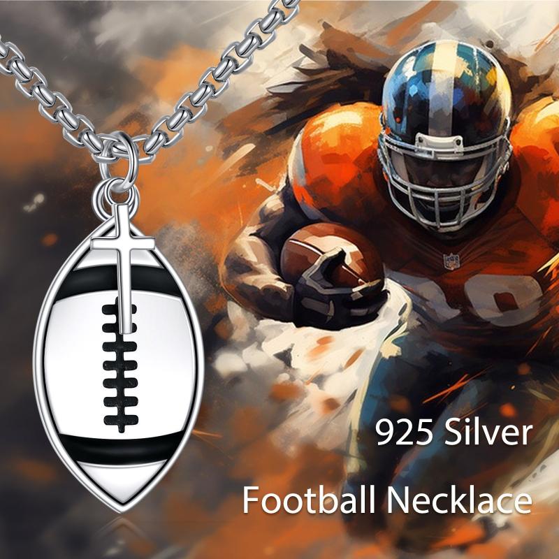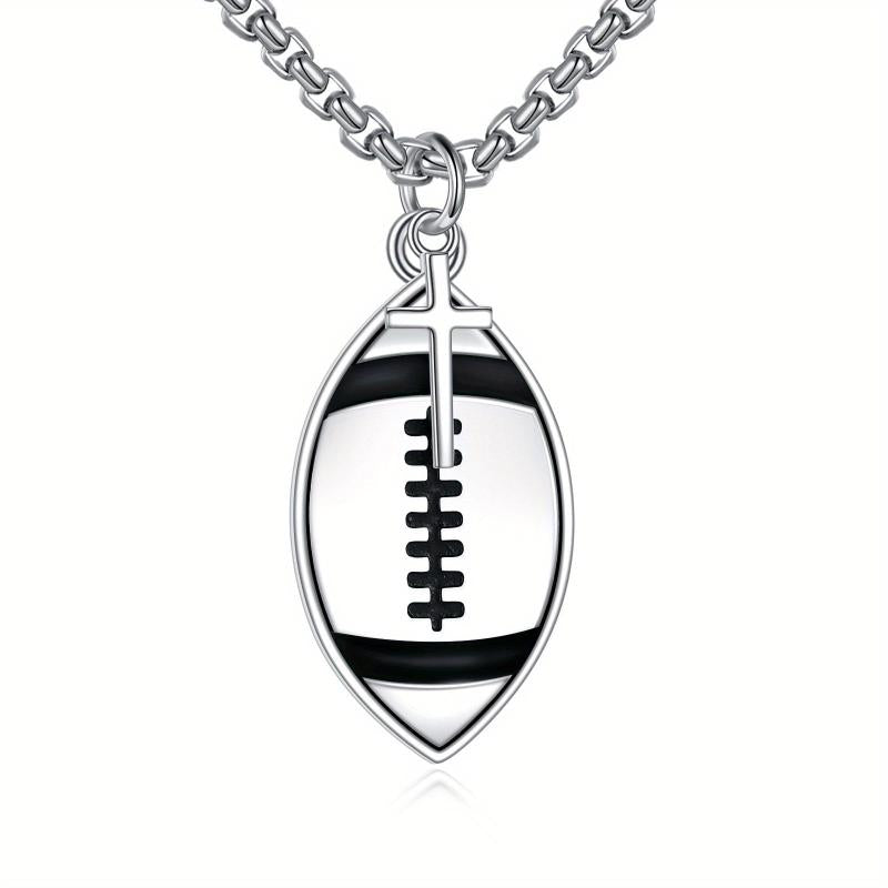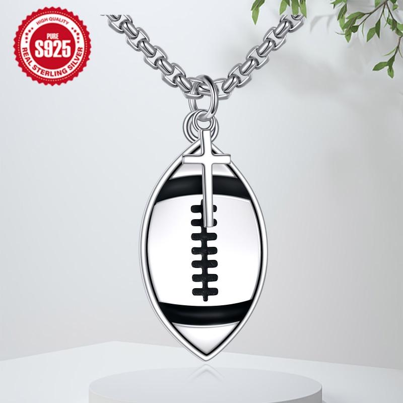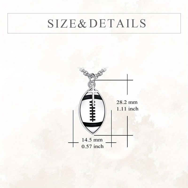 This football necklace is crafted from S925 sterling silver and features a 'Never Give Up' pendant with a cross design. It makes a perfect jewellery piece for football and rugby lovers, as well as football players. Suitable for both women and men.