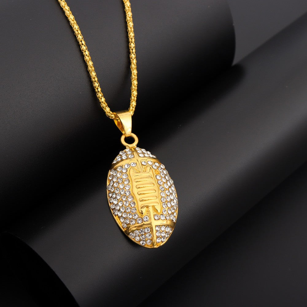 Show off your love for American football with this studded pendant necklace. Perfect for sports enthusiasts and fans of the game.