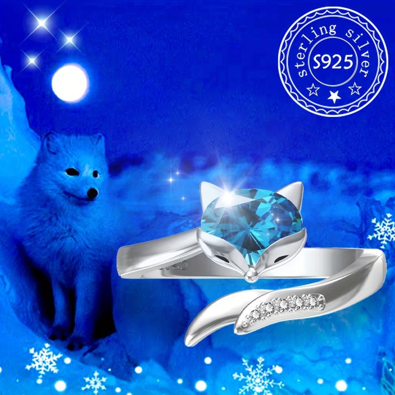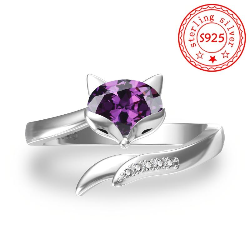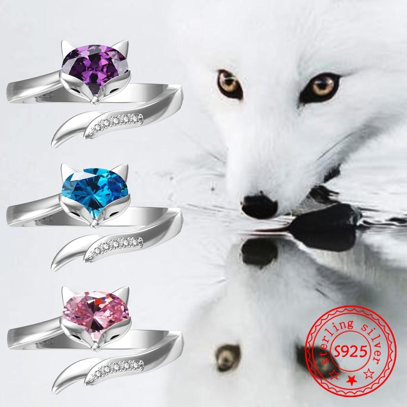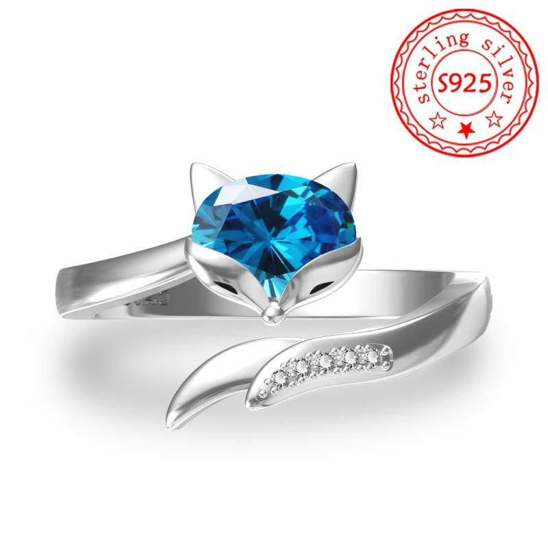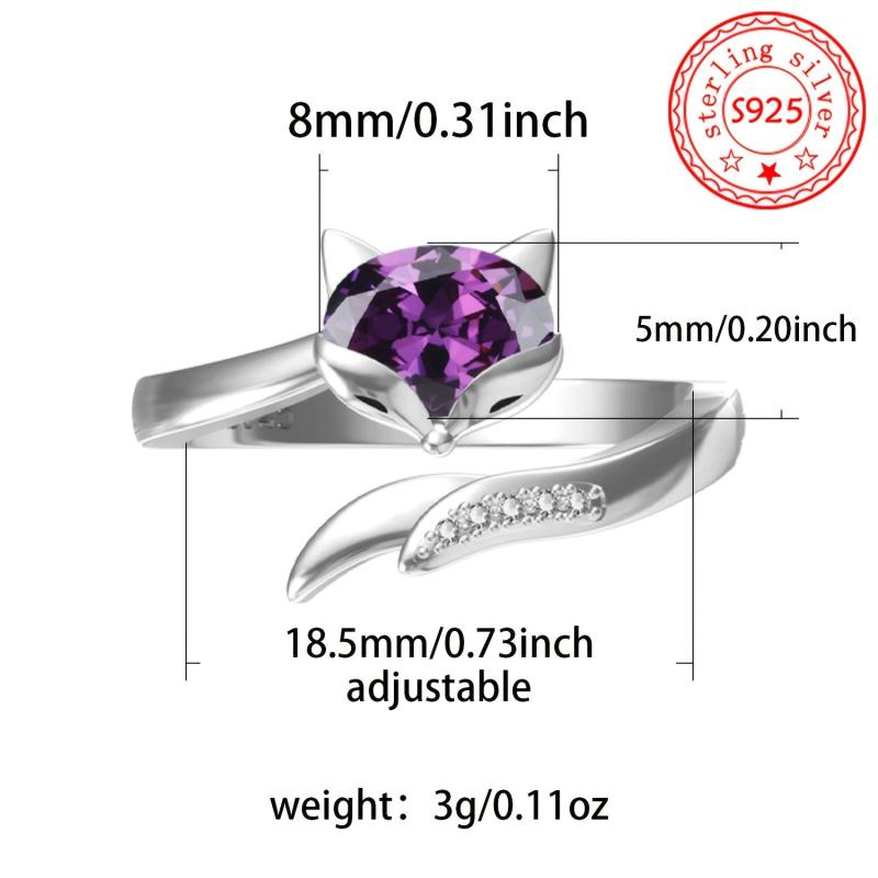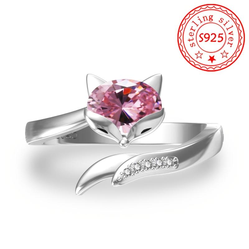 This stunning women's ring features a fox animal design in 925 silver with synthetic zirconia accents. A beautiful and unique gift for any animal lover.