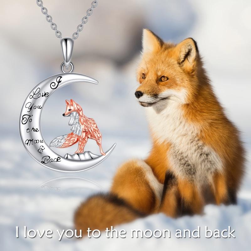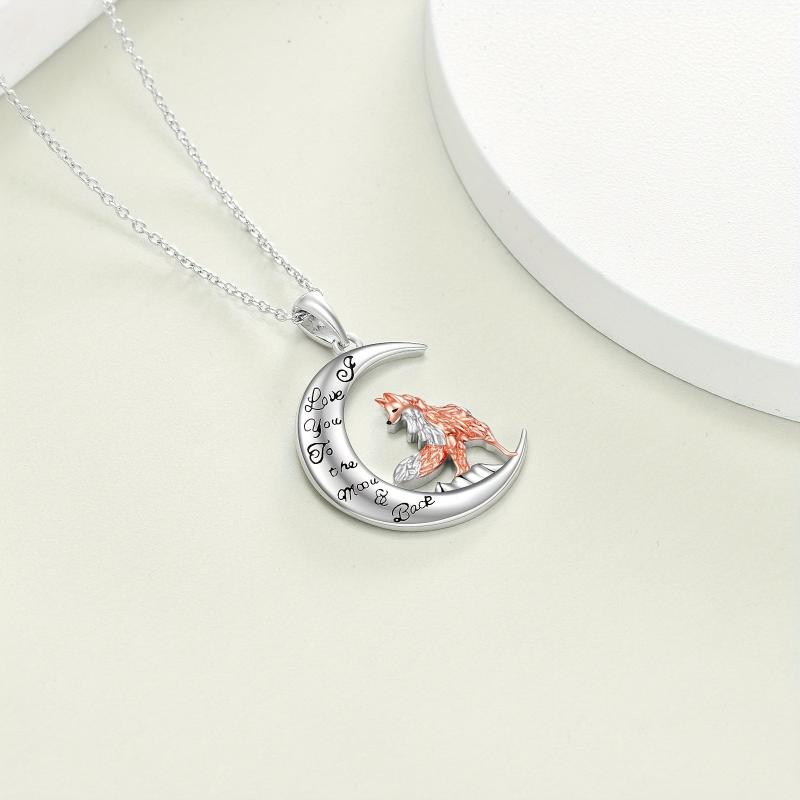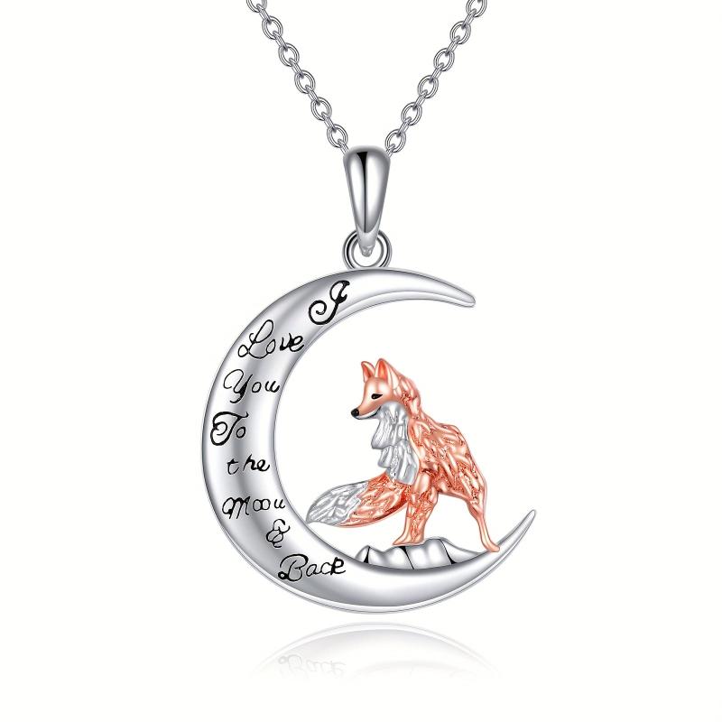 This stunning sterling silver fox necklace features a moon pendant with an engraved message that says 'I Love You To The Moon And Back'. A perfect gift for a loved one or a special treat for yourself.