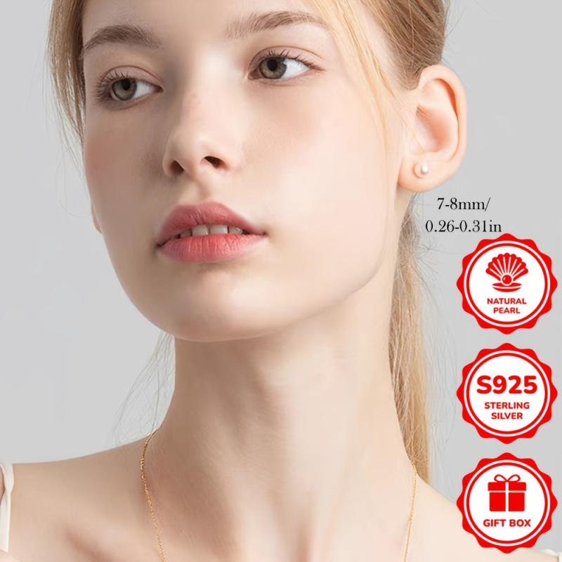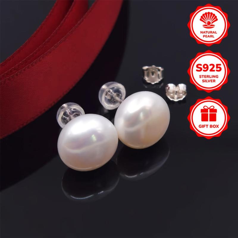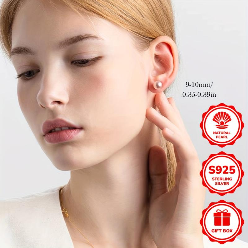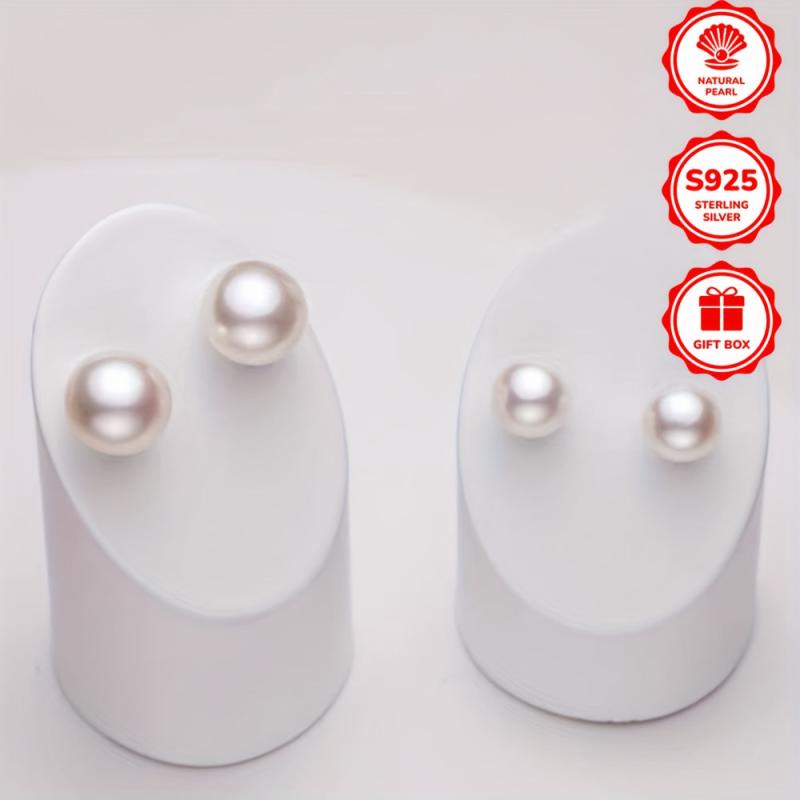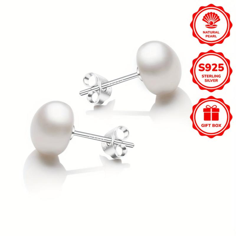 Elegant pair of French 925 sterling silver freshwater pearl stud earrings. Perfect for adding a touch of sophistication to any outfit.