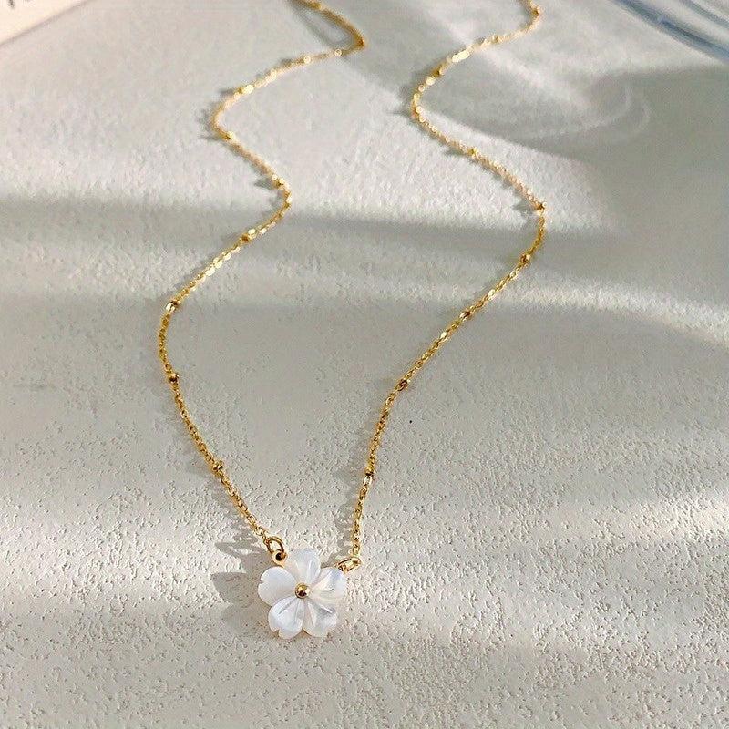 French Floral Pendant Necklace Stainless Steel Flower Collarbone Necklace