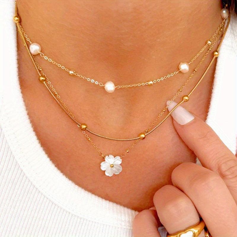 Add elegance to your outfit with this versatile stainless steel necklace featuring a French floral pendant adorned with small golden beads. Perfect for women who love multifunctional and sexy jewelry.