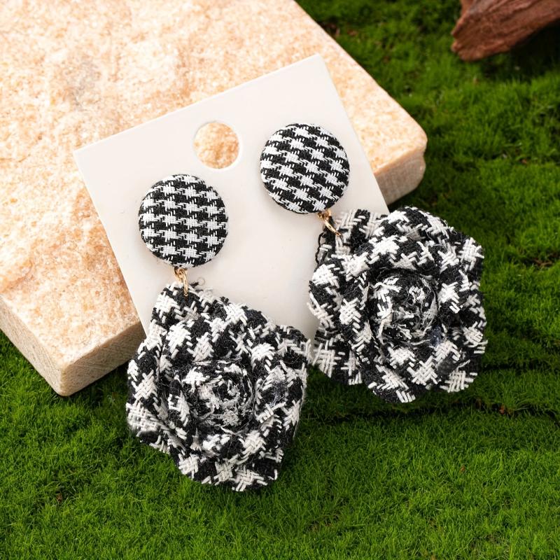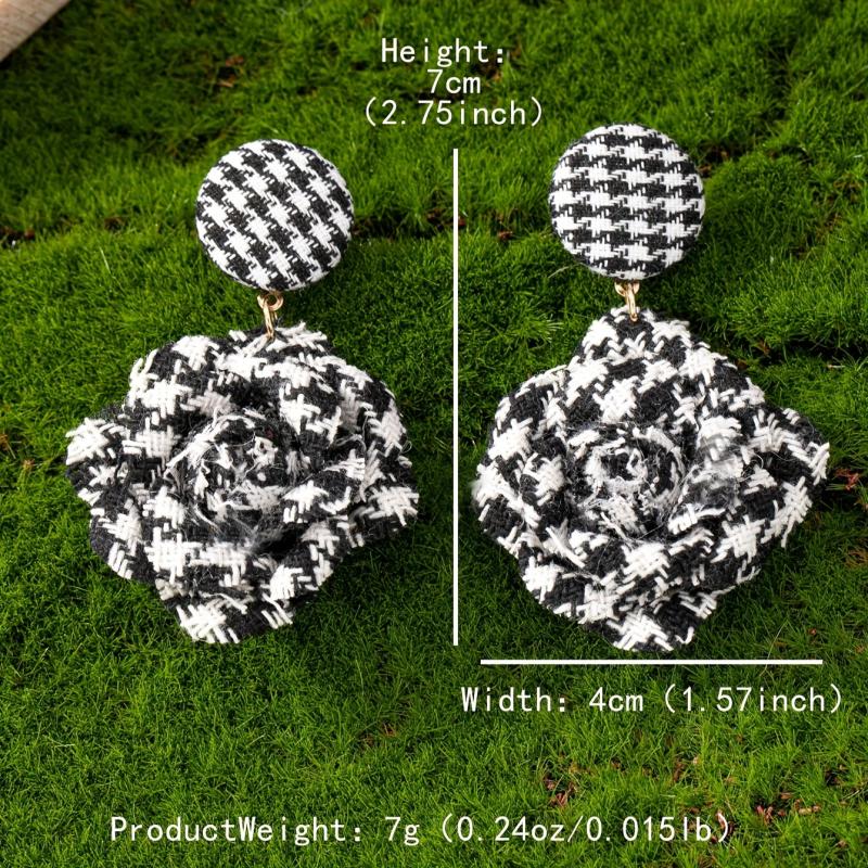Add a touch of vintage charm to your look with these French floral stud earrings featuring checkered roses. These lightweight earrings are perfect for everyday wear or special occasions.