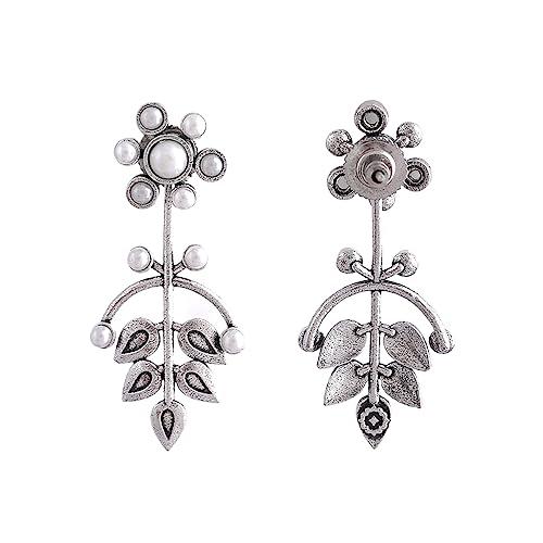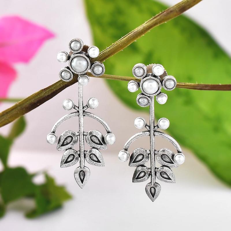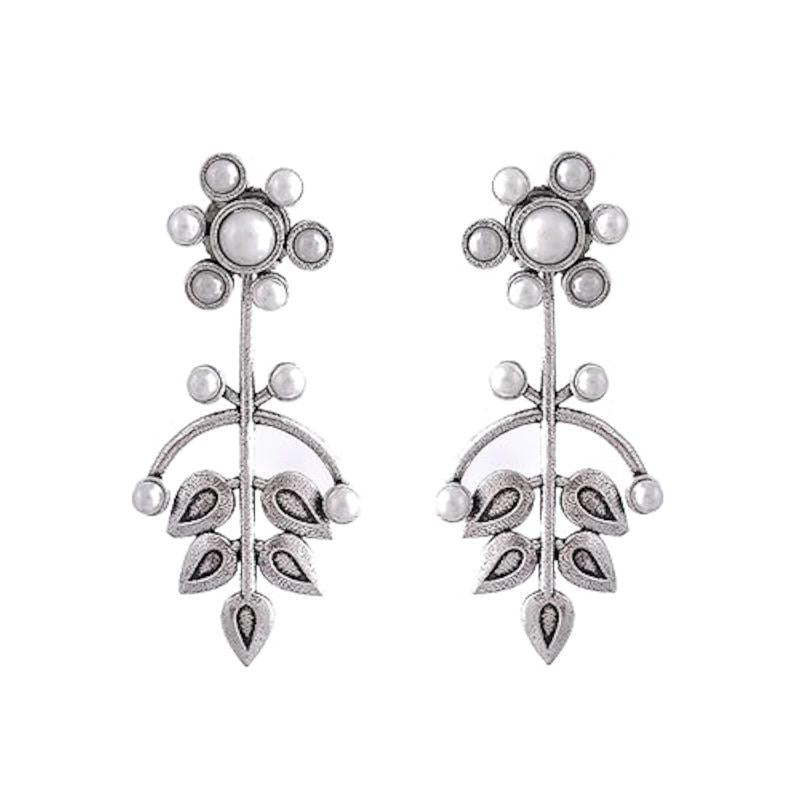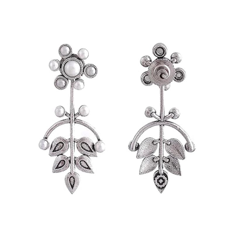 Elegant drop earrings with fern and magnolia design, perfect for adding a touch of nature-inspired beauty to any outfit.